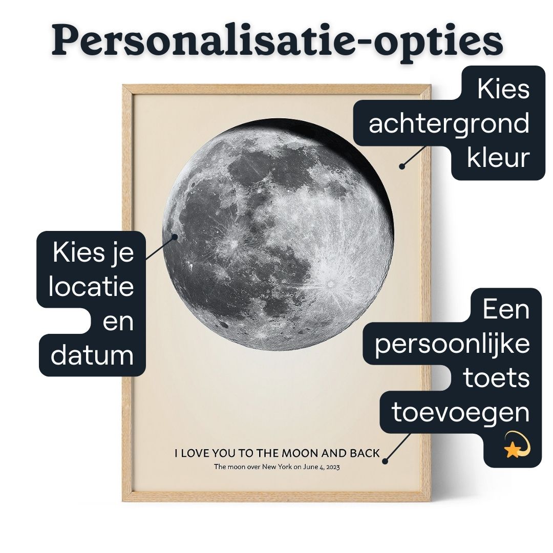 Gepersonaliseerde cadeaus zijn een geweldige manier om je opa te laten zien hoeveel je om hem geeft. Bovendien zullen ze hem zeker doen glimlachen telkens als hij ze ziet. Dus als je op zoek bent naar een uniek en bijzonder cadeau voor opa, zoek dan niet verder dan deze gepersonaliseerde maanafdruk.