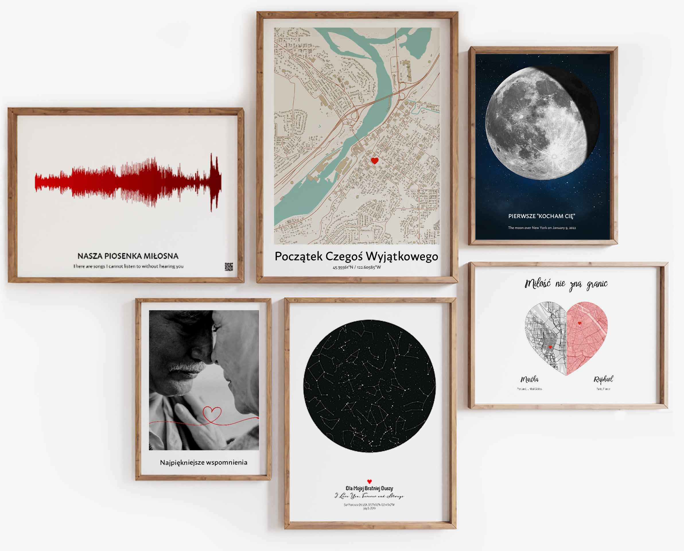 Jak sprawić, aby bliska Ci osoba poczuła się wyjątkowo? Postaw na oryginalność i podaruj jej prezent, który zapamięta na długie lata. Z pomocą przychodzi Positive Prints i nasze personalizowane wydruki. Każdy z projektów wykonujemy na zamówienie, według parametrów wybranych przez Ciebie. Wybierz plakat z Mapą Nieba lub Fazą Księżyca, aby upamiętnić datę urodzin Twojego bliskiego lub mapę Nasze Pierwsze Spotkanie, aby utrwalić moment spotkania swojej drugiej połówki. Każdy z plakatów jest wyjątkowy i drukowany po złożeniu spersonalizowanego zamówienia – uczucia włożone w przygotowanie takiego upominku z pewnością nie przejdą bez echa!