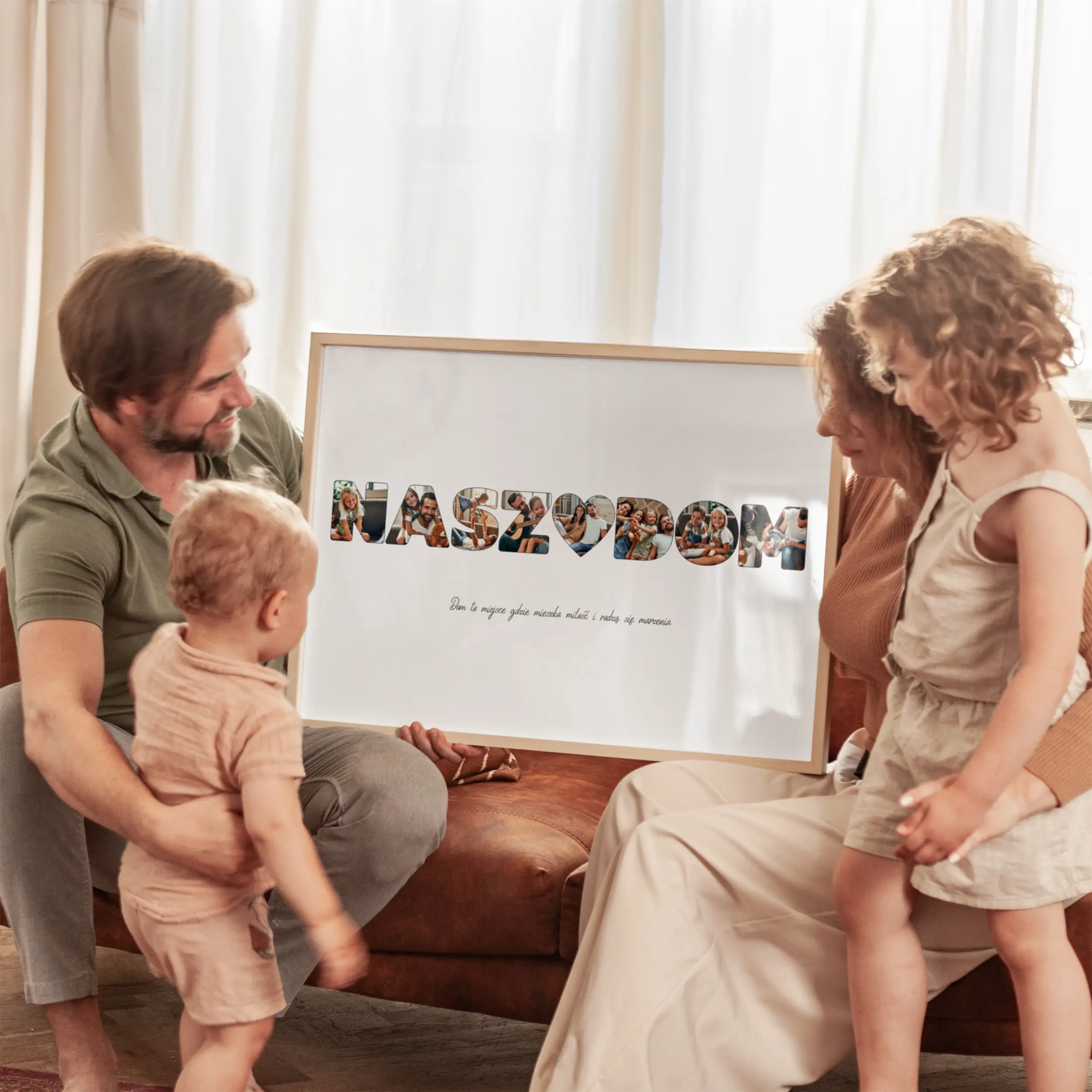 Dom - Kolaż ze Zdjęć w Formie Napisu to idealny spersonalizowany prezent na każdą okazję. Niezależnie od tego, czy szukasz prezentu na parapetówkę, czy specjalnej pamiątki dla ukochanej osoby, ten kreatywny i wyjątkowy kolaż oferuje piękny sposób na zaprezentowanie cennych zdjęć i dzieł sztuki. Dzięki Kolażowi ze Zdjęć w Formie Napisu możesz być tak kreatywny i spersonalizowany, jak tylko chcesz. Wybierając specjalne słowo lub zestaw liter, takich jak „Dom”, „Rodzina”, „Witamy”, a nawet inicjały właścicieli domów, możesz stworzyć jedyną w swoim rodzaju pamiątkę, która doskonale oddaje istotę domu. Szeroka gama możliwości oznacza, że możesz puścić wodze fantazji i stworzyć oszałamiające wizualnie i wymowne dzieło sztuki, które sprawi, że każdy poczuje się wyjątkowo.