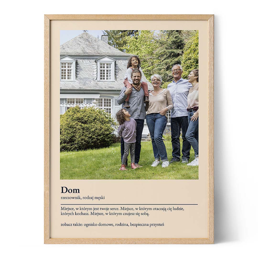 Szukasz oryginalnego i wyjątkowego prezentu na parapetówkę? Nasz produkt Dom Plakat z Definicją to idealny personalizowany wydruk. Uchwyć znaczenie słowa "dom" za pomocą własnej definicji i zdjęcia, które doda mu indywidualnego charakteru.