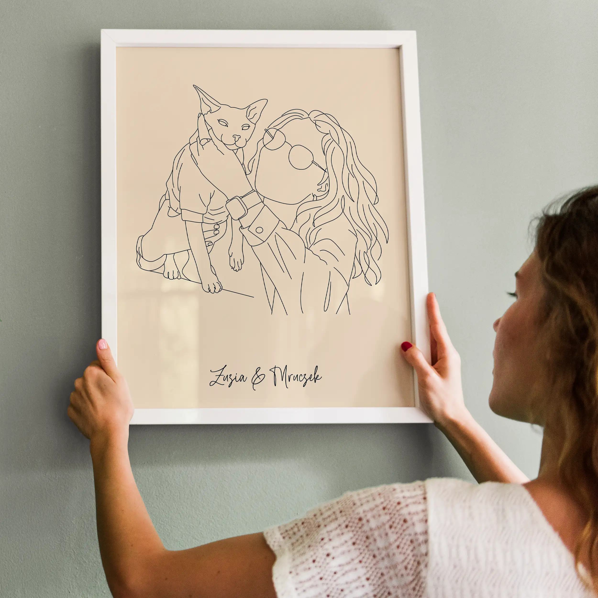 Uchwyć wyjątkową więź ze swoim kotem, przekształcając ulubione zdjęcie w minimalistyczny portret line art