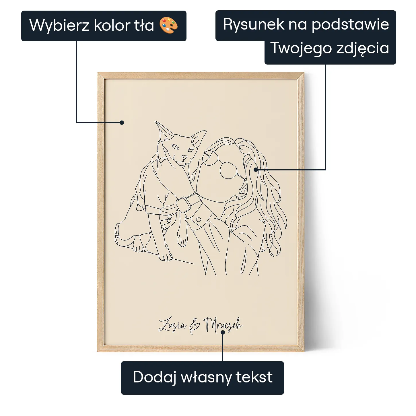 Oferujemy bezpłatną personalizację dla wszystkich zamówień, zapewniając, że każde dzieło sztuki jest unikalnie dostosowane do preferencji naszych klientów. Nasz przyjazny dla użytkownika interfejs umożliwia łatwe tworzenie własnych, personalizowanych dzieł sztuki. Niezależnie od tego, czy korzystasz z komputera stacjonarnego, czy urządzenia mobilnego, nasz interfejs został zaprojektowany z myślą o intuicyjnym doświadczeniu.