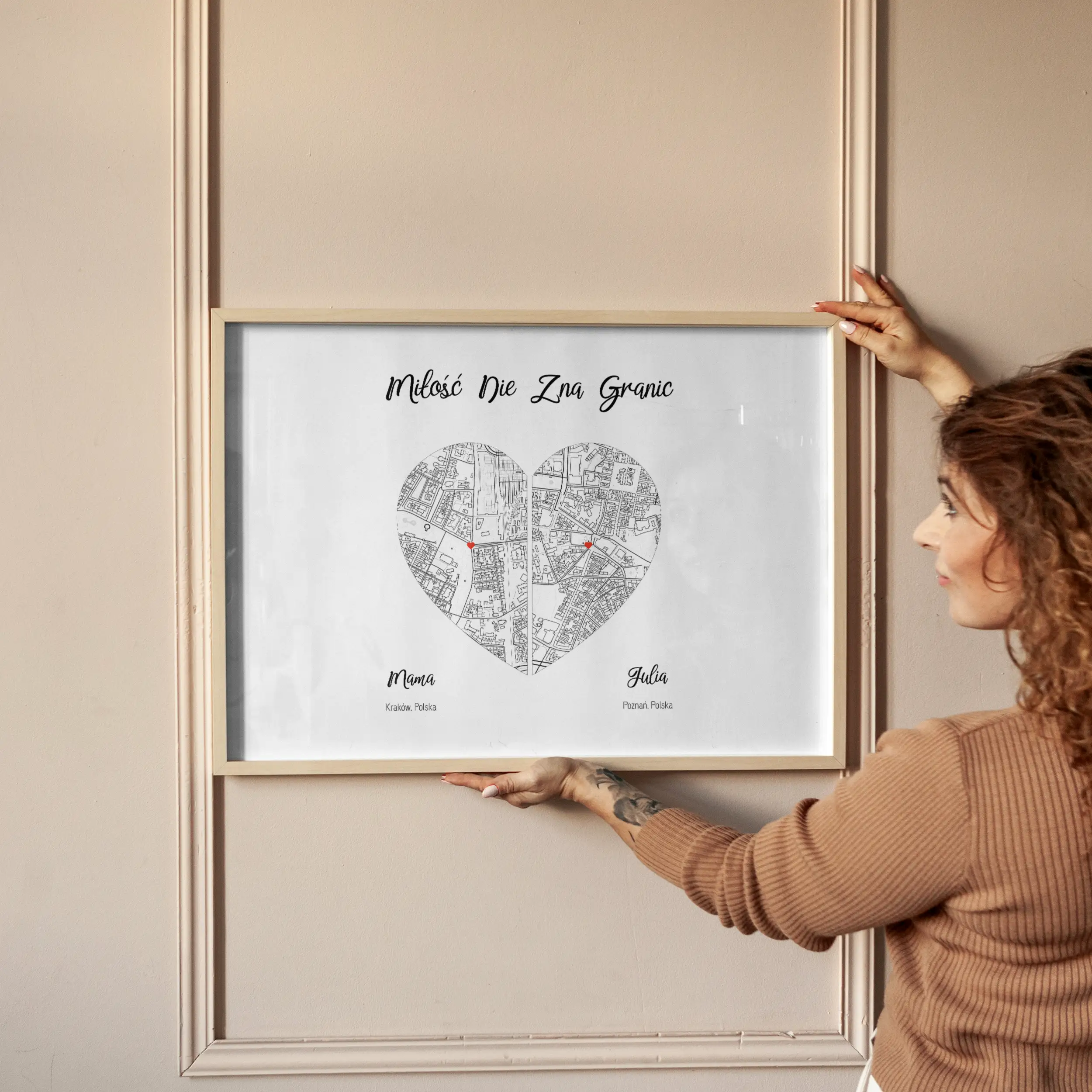 Szukasz idealnego prezentu dla mamy, aby pokazać, jak bardzo Ci zależy? Mamy coś dla Ciebie - Mapa Matki i Dziecka! To oryginalny sposób na uwiecznienie Waszej wyjątkowej więzi. Ten spersonalizowany plakat będzie nie tylko przemyślanym prezentem, ale także niezapomnianą pamiątką, która łączy dwa ważne dla Ciebie miejsca.