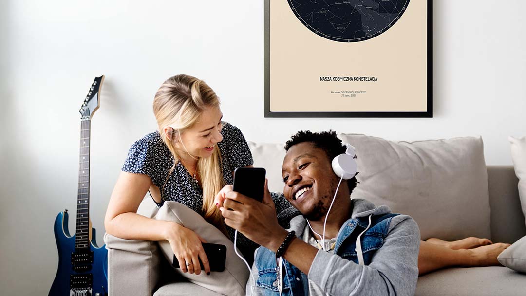 Dzięki Positive Prints stworzenie pięknych map nieba jest banalnie proste. W 3 prostych krokach możesz spersonalizować mapę na podstawie daty, czasu i lokalizacji. Możesz dowolnie wybrać kolorystykę plakatu i dodać detale takie jak gwiazdy, nazwy konstelacji, planety. Na koniec dodasz własny tekst lub wzruszający cytat o gwiazdach, aby podkreślić znaczenie danego dnia i widoku nieba dla obdarowanej osoby.