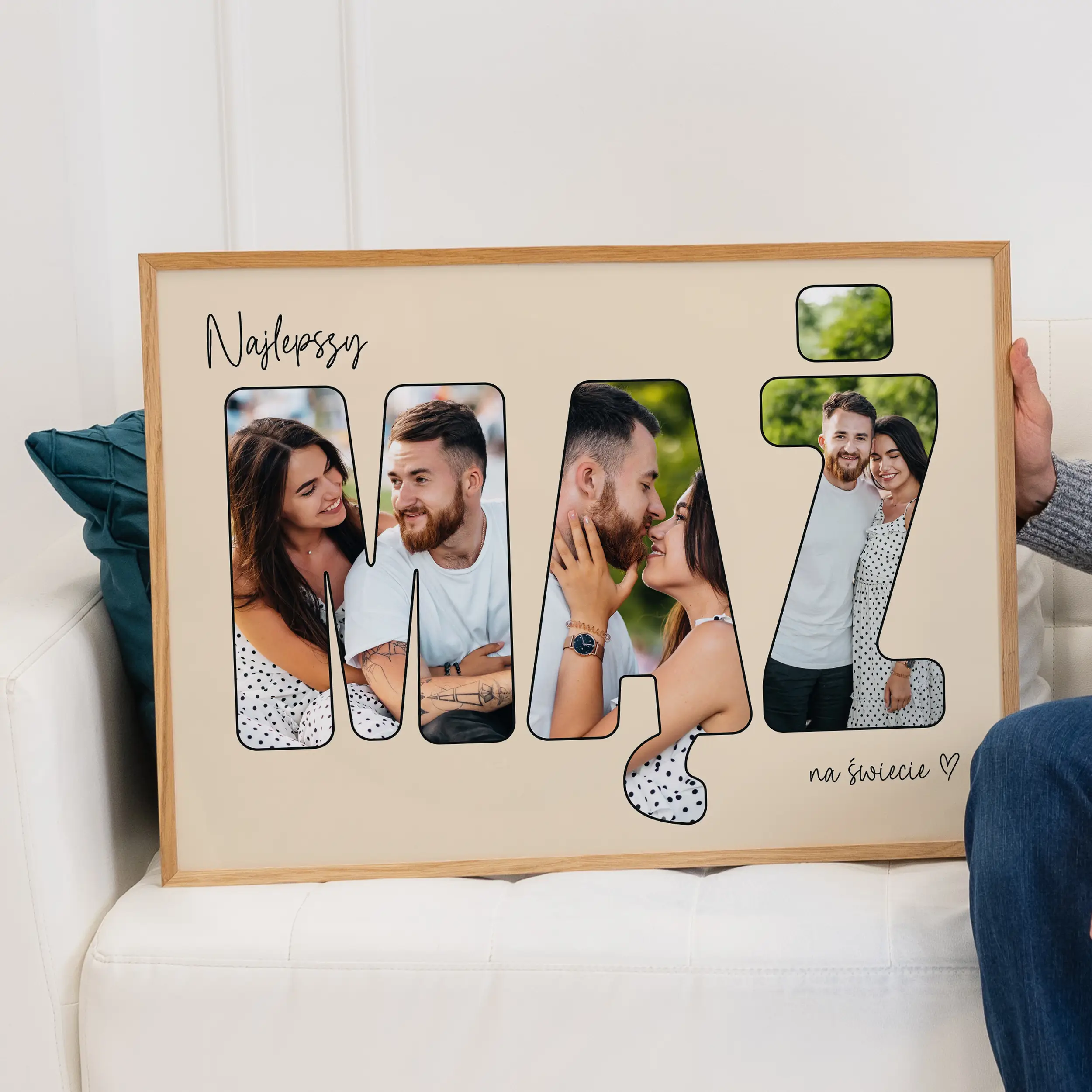 Kreatywny pomysł na prezent dla Męża - kolaż ze zdjęć z spersonalizowaną dedykacją, z pewnością wzruszy Twojego Męża