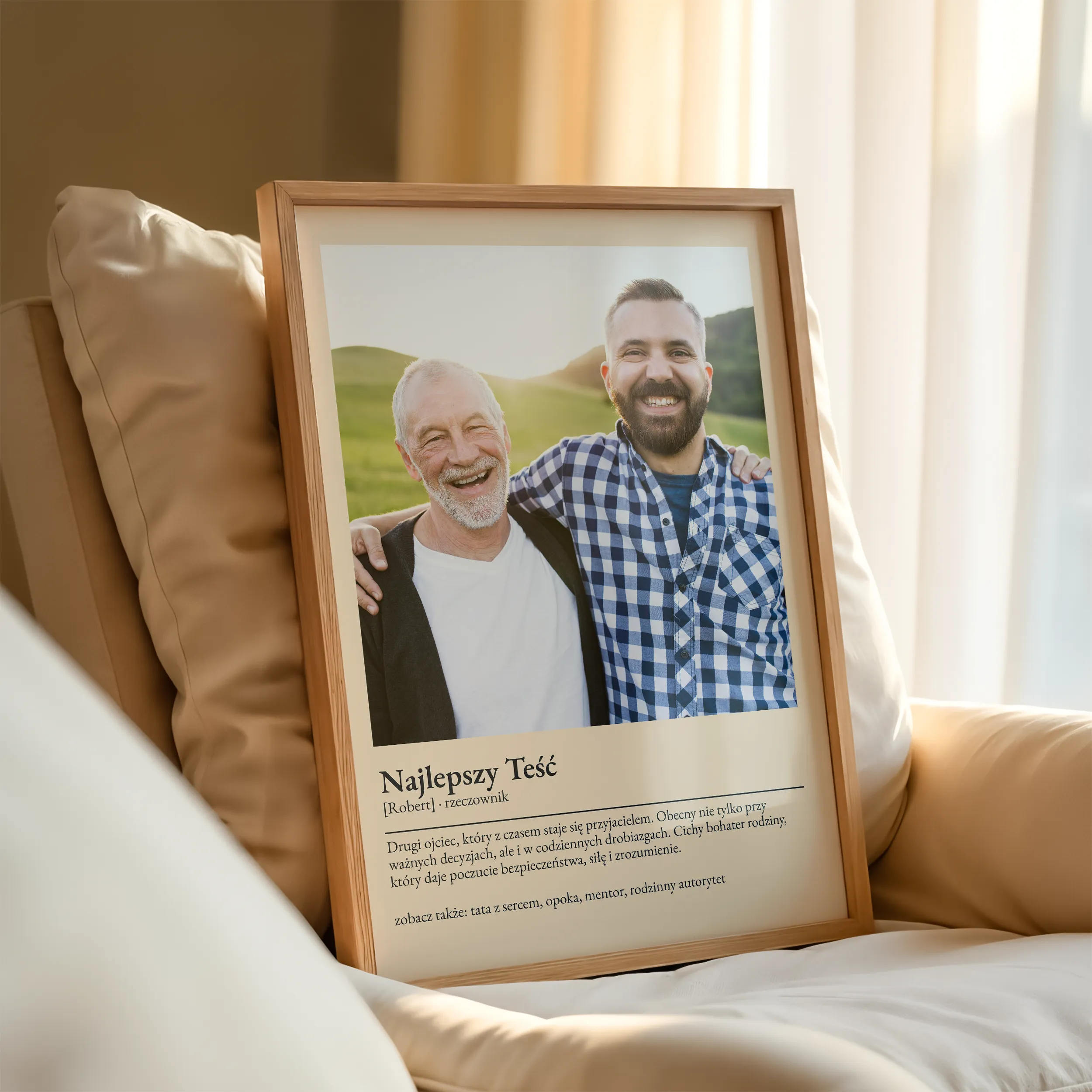 Wyjątkowy prezent dla wyjątkowego teścia, by podziękować za jego mądrość, wsparcie i obecność. Plakat, który mówi więcej niż słowa