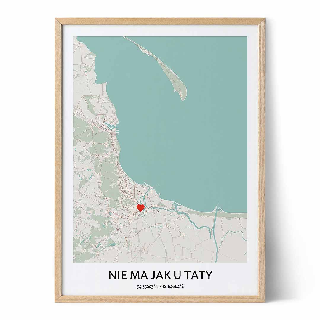 Jest to estetyczna i szczegółowa mapa wskazanej przez Ciebie lokalizacji. Specjalnym markerem zaznacz miejsce, w którym mieszka Twój tata, aby wyrazić to, jak wiele dla Ciebie znaczy. Tak spersonalizowany prezent na Dzień Ojca z pewnością wzbudzi wiele pozytywnych emocji.