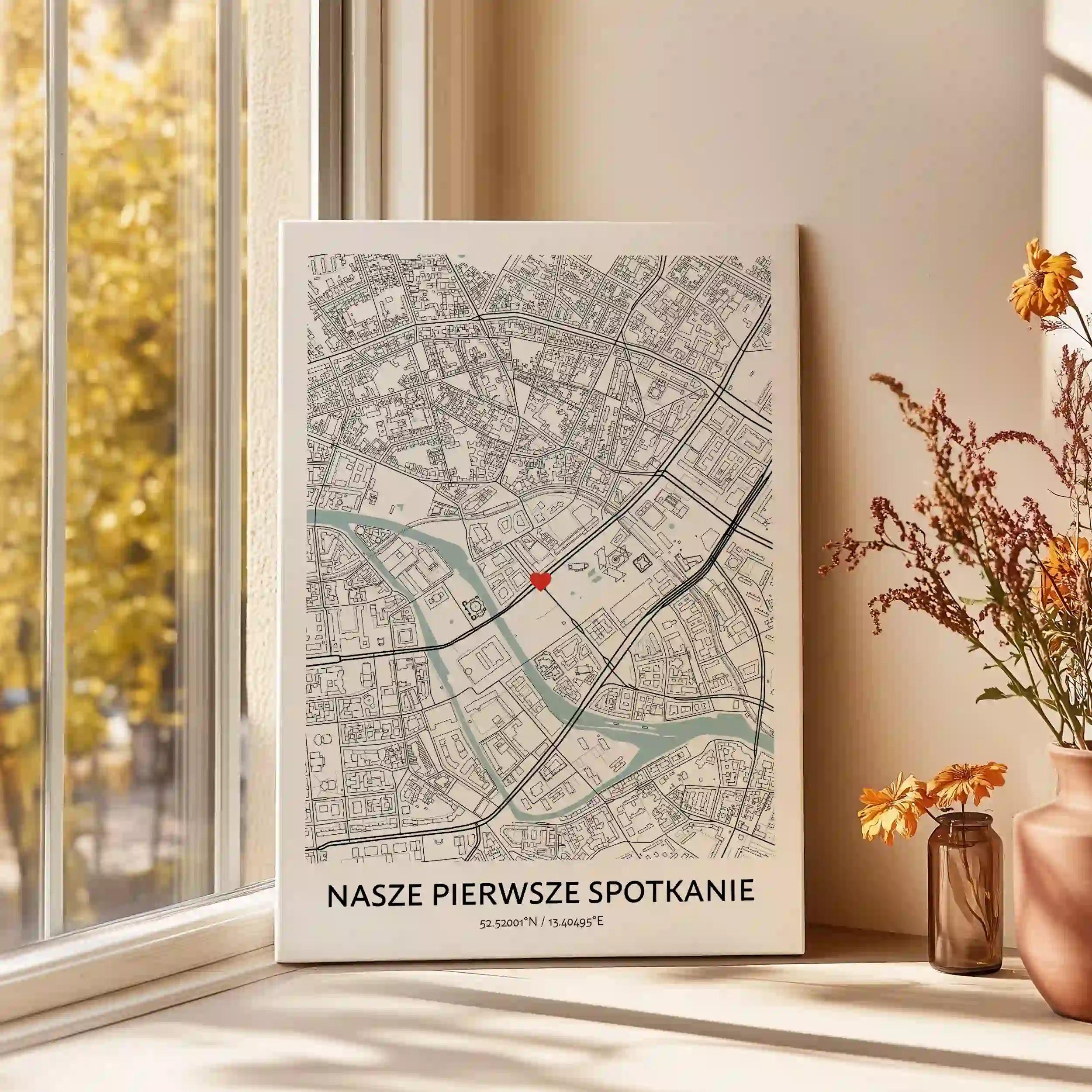 Szukasz wyjątkowego i wzruszającego prezentu? Nasz Obraz na Płótnie Nasze Pierwsze Spotkanie to idealny wybór. Podkreśl wyjątkowe miejsce, w którym Ty i Twoja ukochana osoba spotkaliście się po raz pierwszy za pomocą pięknej, personalizowanej mapy.