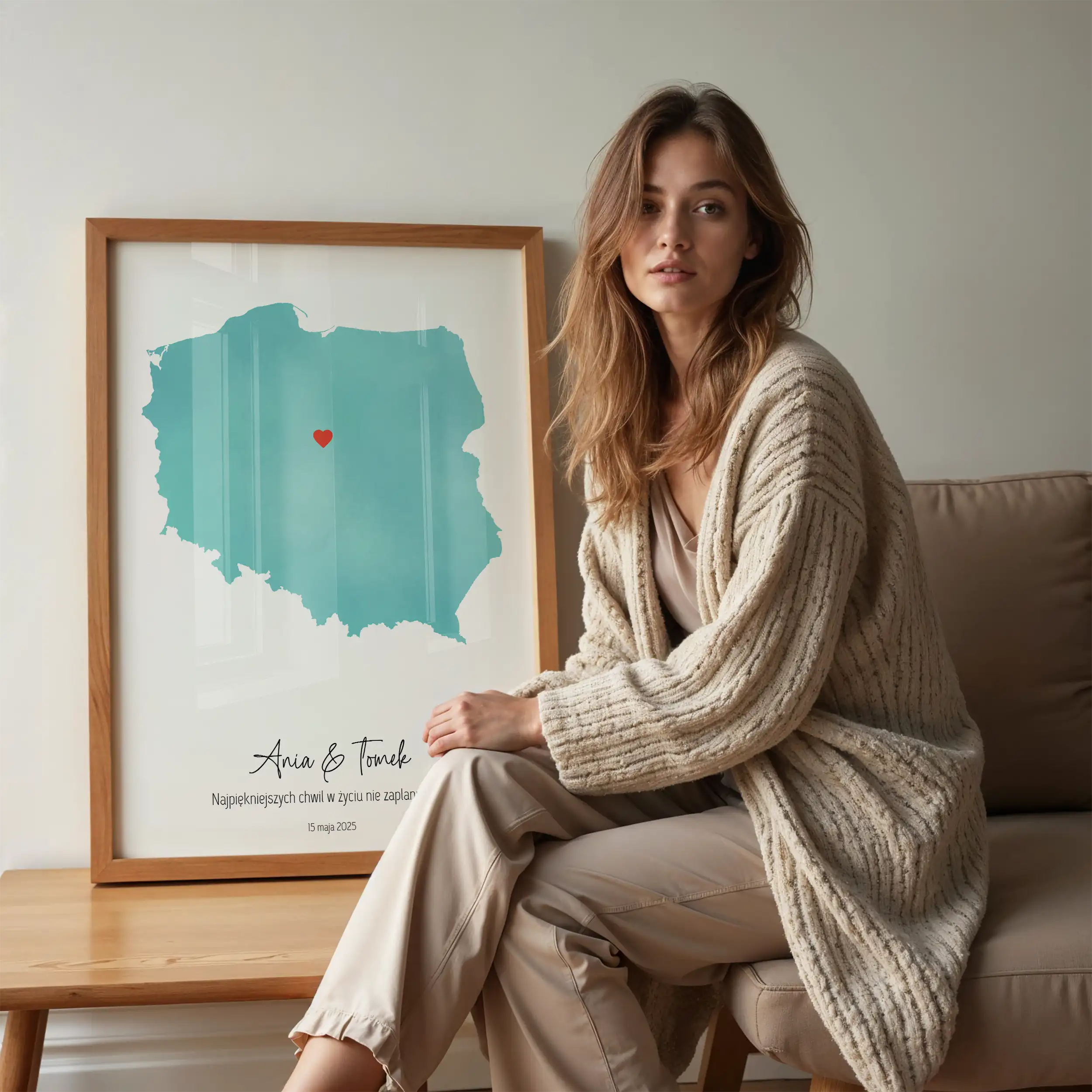 Szukasz jedynego w swoim rodzaju, wspaniałego prezentu? Nie szukaj dalej! Nasza Personalizowana Mapa - Akwarela to idealny wybór. W zaledwie kilku prostych krokach możesz stworzyć piękny i spersonalizowany nadruk, który pozostawi ogromne wrażenie na Twoich bliskich. Niezależnie od tego, czy jest to specjalna okazja, czy po prostu chęć okazania uznania, ta Personalizowana Mapa - Akwarela jest przemyślanym i niezapomnianym prezentem.