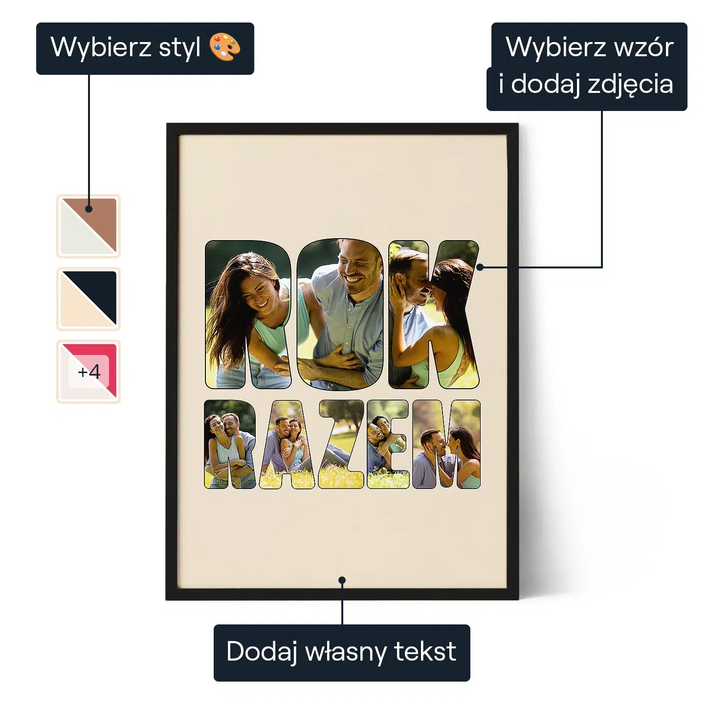Zamień zdjęcia z Waszego pierwszego wspólnego roku w spersonalizowany kolaż, który celebruje miłość, wspomnienia i początek Waszej wspólnej drogi jako pary