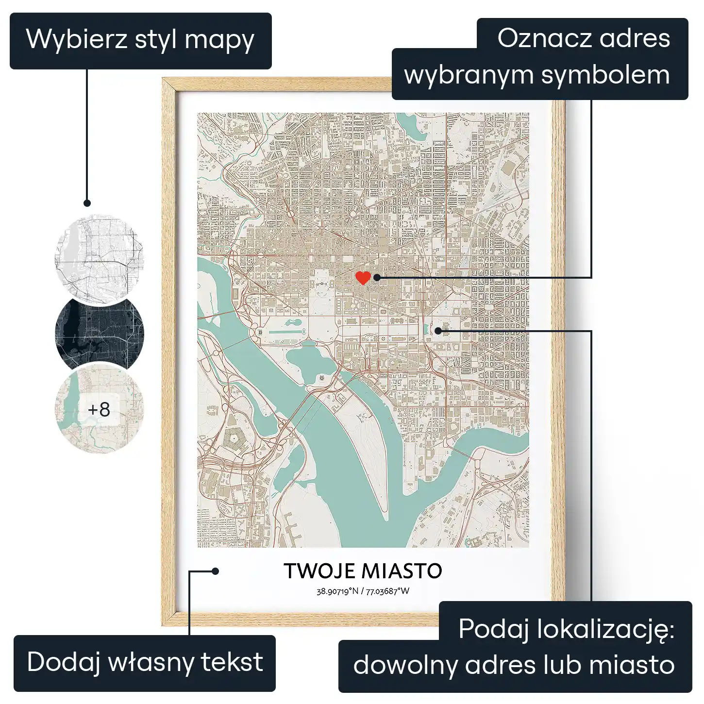 Zamów personalizowaną mapę swojego wyjątkowego miejsca i przeżyj na nowo wspomnienia najważniejszych chwil w swoim życiu.