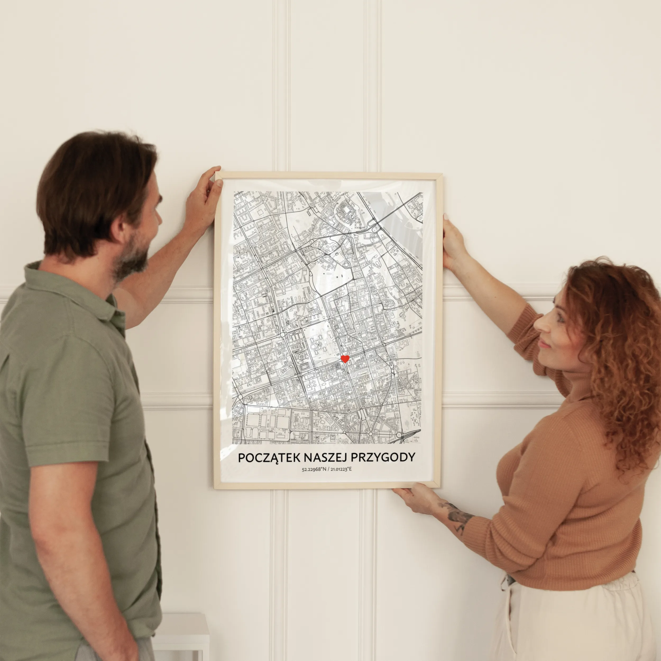 Nasze piękne Mapy Początek Wspaniałej Przygody, są idealnym prezentem rocznicowym dla każdej pary i drugiej połówki. To małe, ale potężne świadectwo historii, którą wspólnie piszecie, i umożliwia podzielenie się nią z innymi. Każda mapa jest prawdziwym dziełem sztuki i jest dostosowana do każdego klienta.