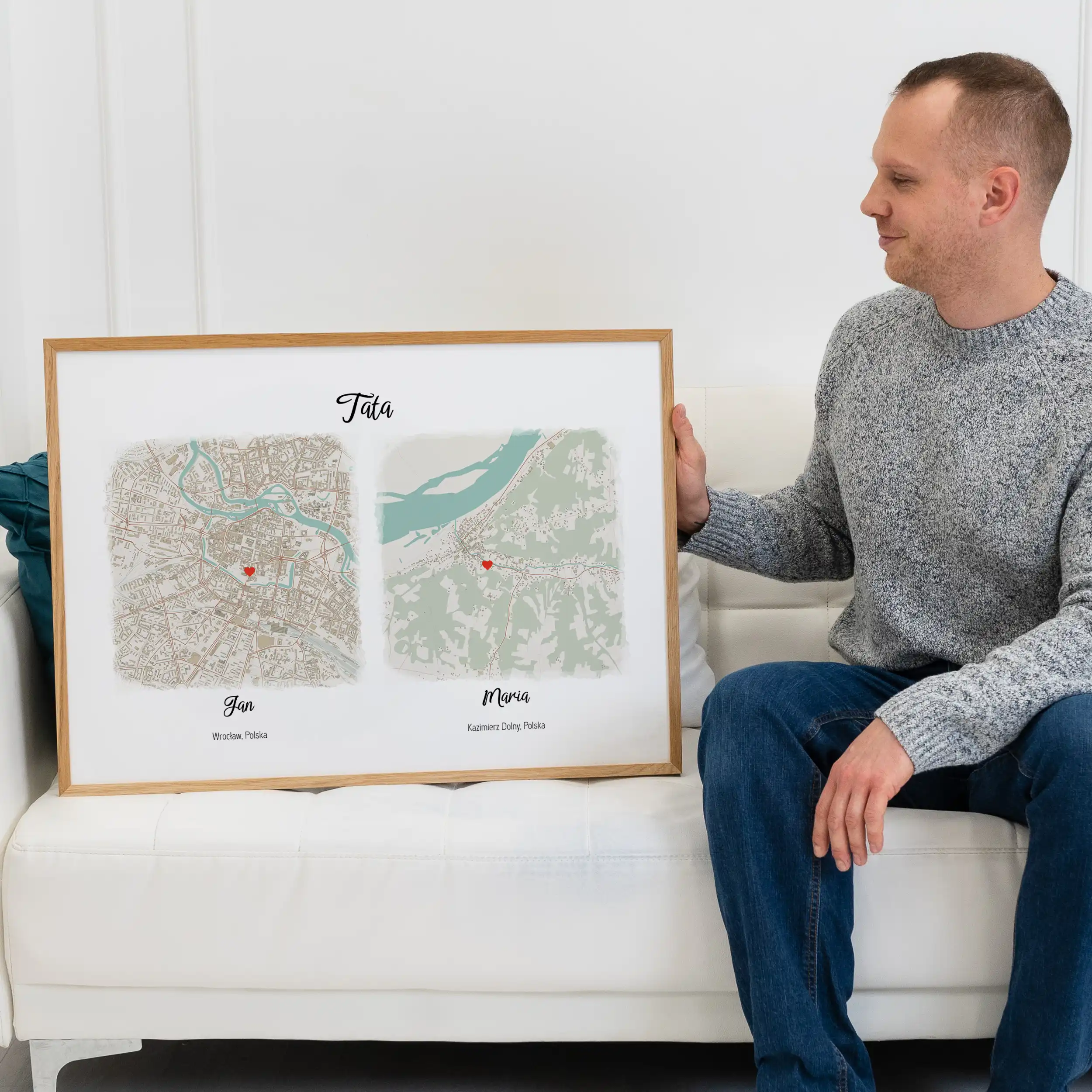 Spersonalizowany Plakat - Podwójna Mapa Dla Taty