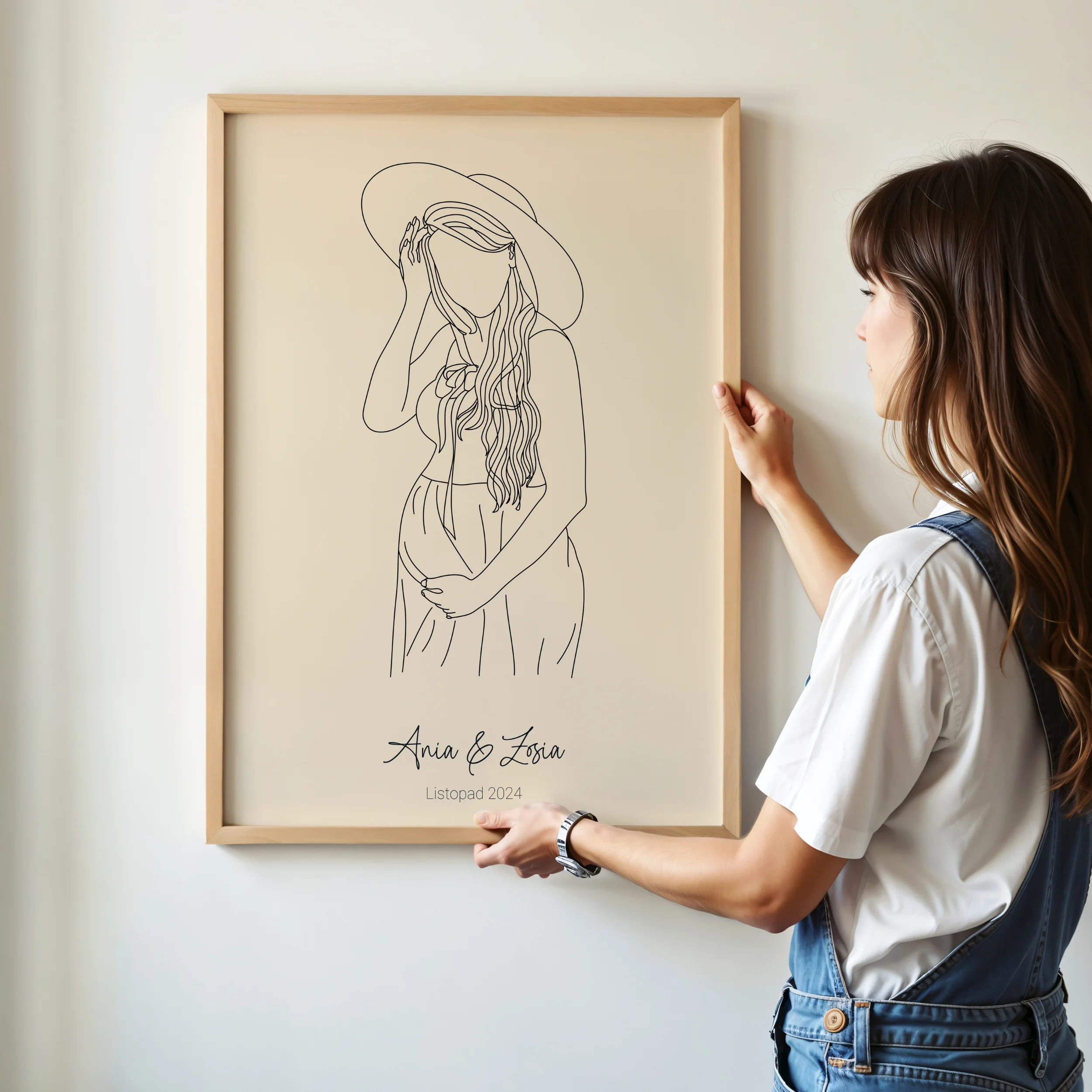 Uczcij piękno macierzyństwa za pomocą delikatnego portretu w stylu line art