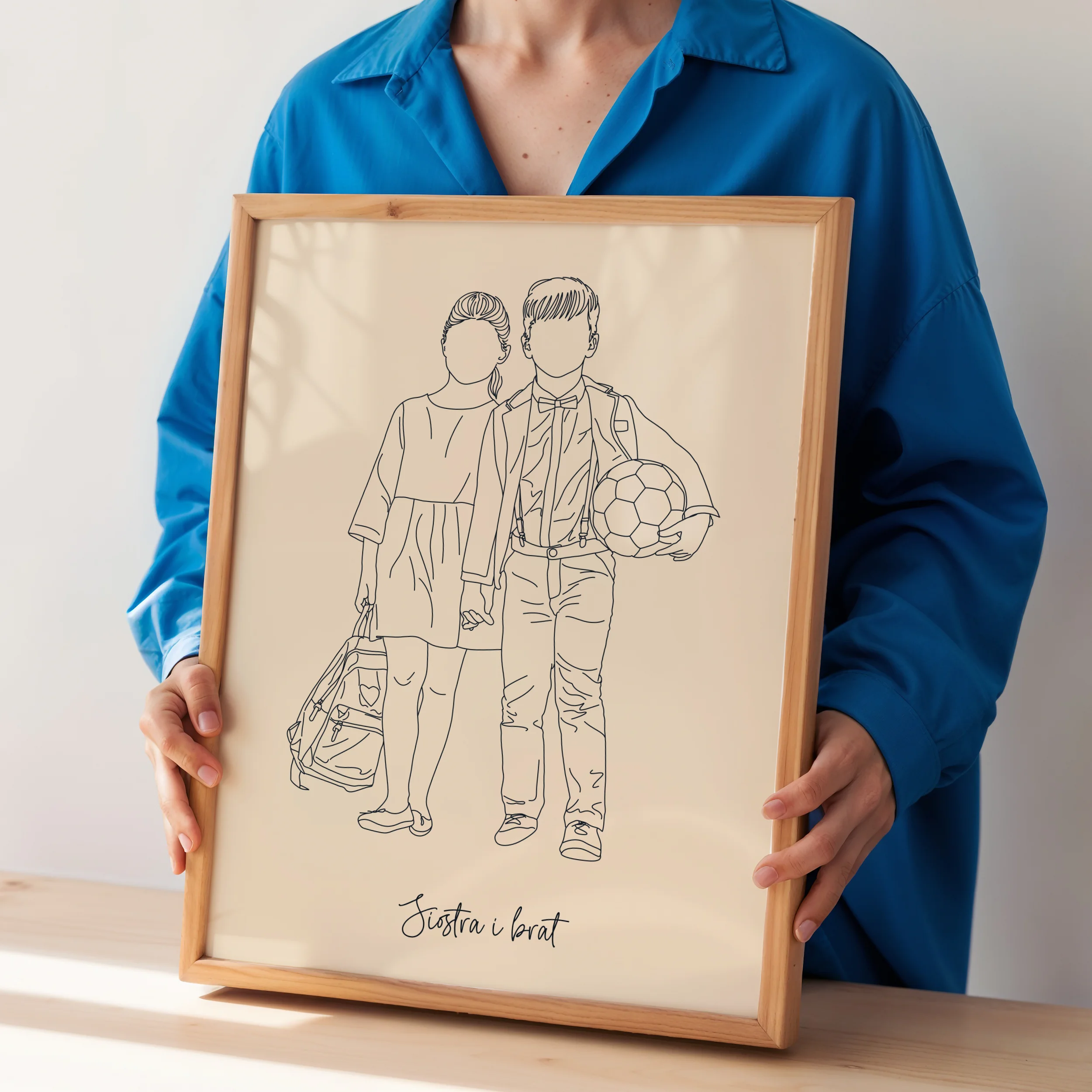 Minimalistyczny portret line art stworzony ze zdjęcia – wyjątkowa pamiątka, która oddaje piękno relacji rodzeństwa