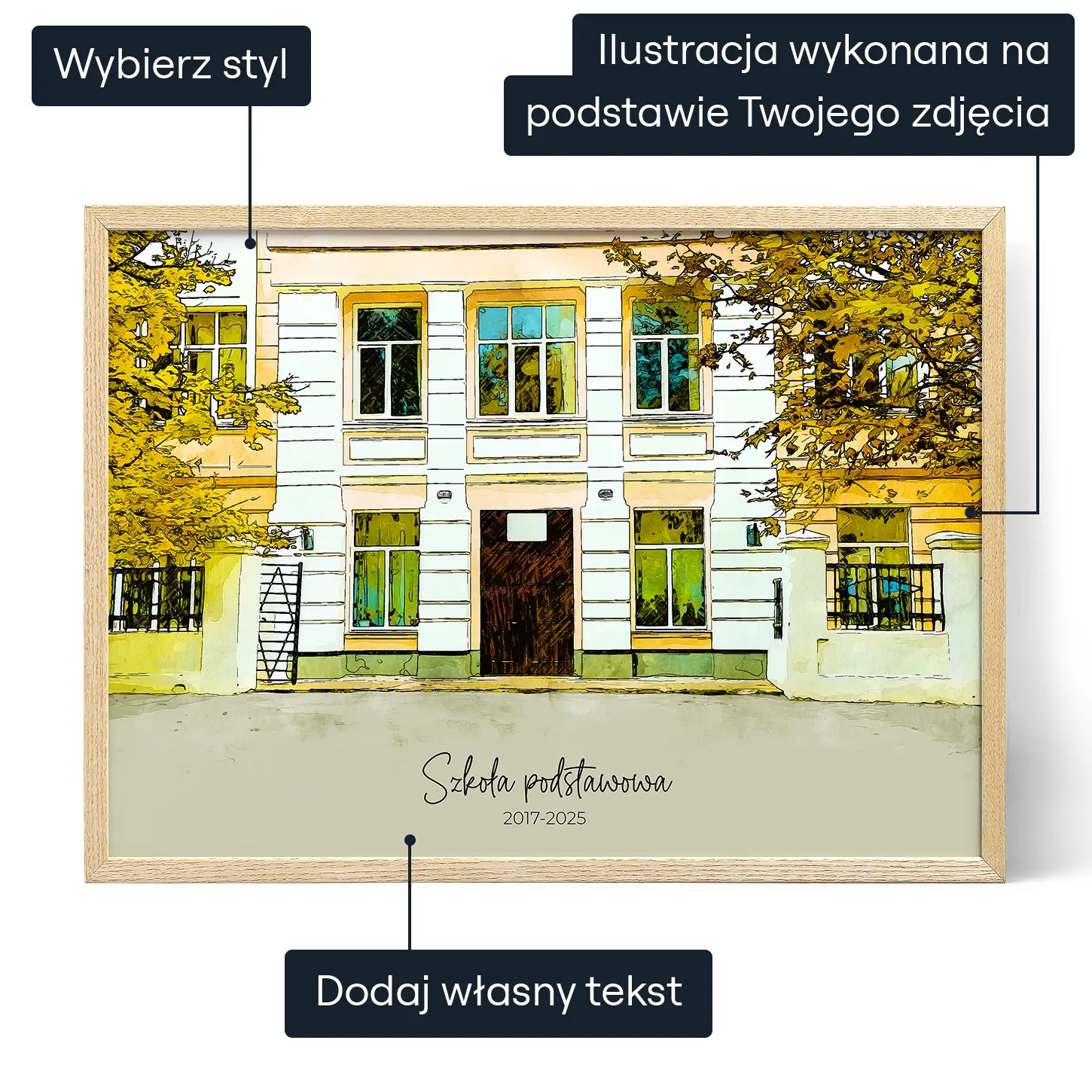 Szkoła - personalizowany obraz ze zdjęcia - akwarela