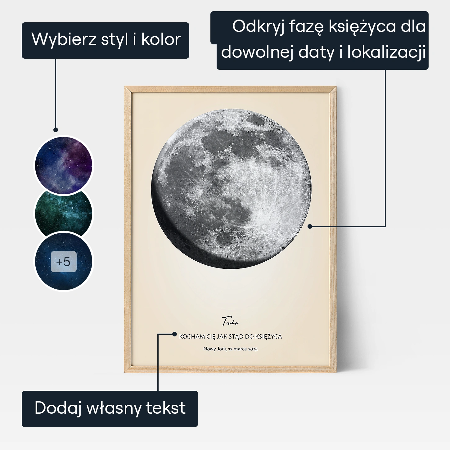 Podaruj tacie kosmiczną pamiątkę – plakat Księżyca z wyjątkową dedykacją, który będzie mu przypominać o Twojej miłości każdego dnia