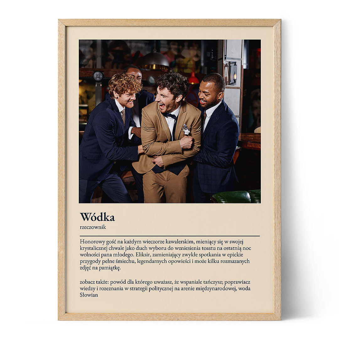 Wódka Plakat z Definicją to idealny prezent na wieczór kawalerski, prezent dla pana młodego lub świadków, czy też zabawny upominek dla przyjaciela, który uwielbia imprezować. Wyobraź sobie te śmiech i rozbawienie, gdy zobaczą personalizowany wydruk, który idealnie oddaje ich imprezowego ducha.