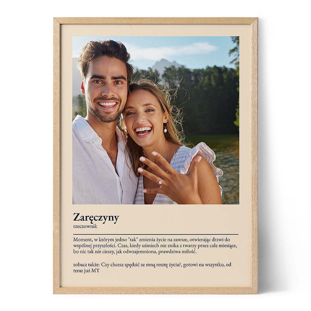 Szukasz wyjątkowego i wzruszającego sposobu na świętowanie zaręczyn? Nasz produkt Zaręczyny Plakat z Definicją to idealny personalizowany prezent. Uchwyć radość tej wyjątkowej chwili za pomocą specjalnej definicji i zdjęcia, które naprawdę trafia prosto w serce.