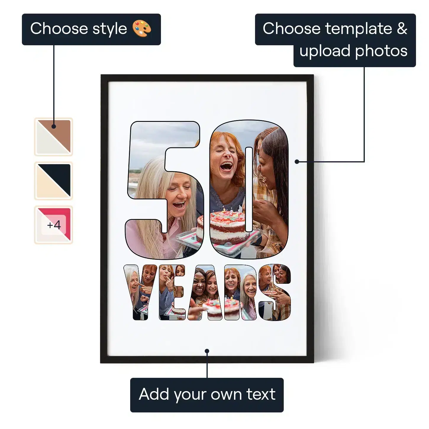 Turn photos from 50 years of life into a personalized collage that celebrates memories, milestones, and special moments in a meaningful birthday keepsake