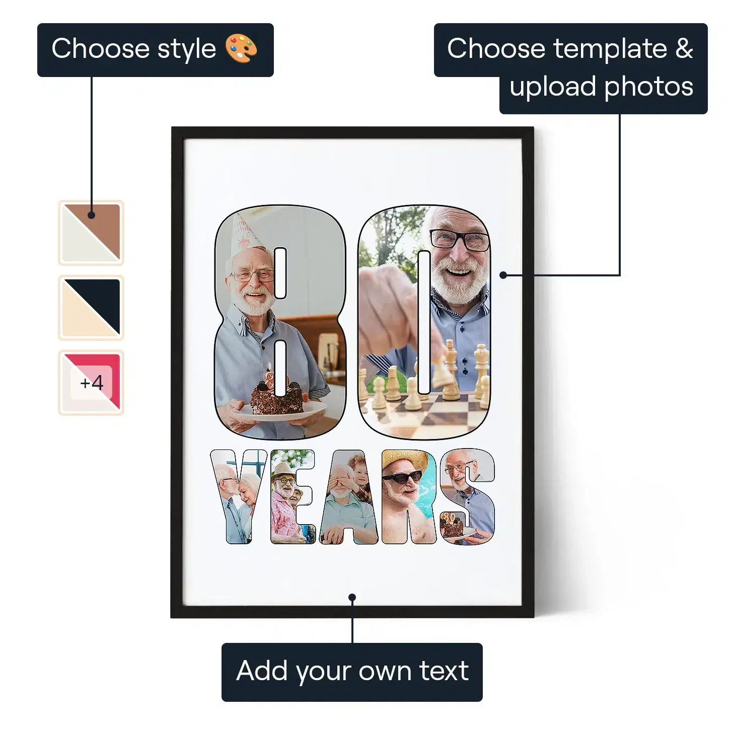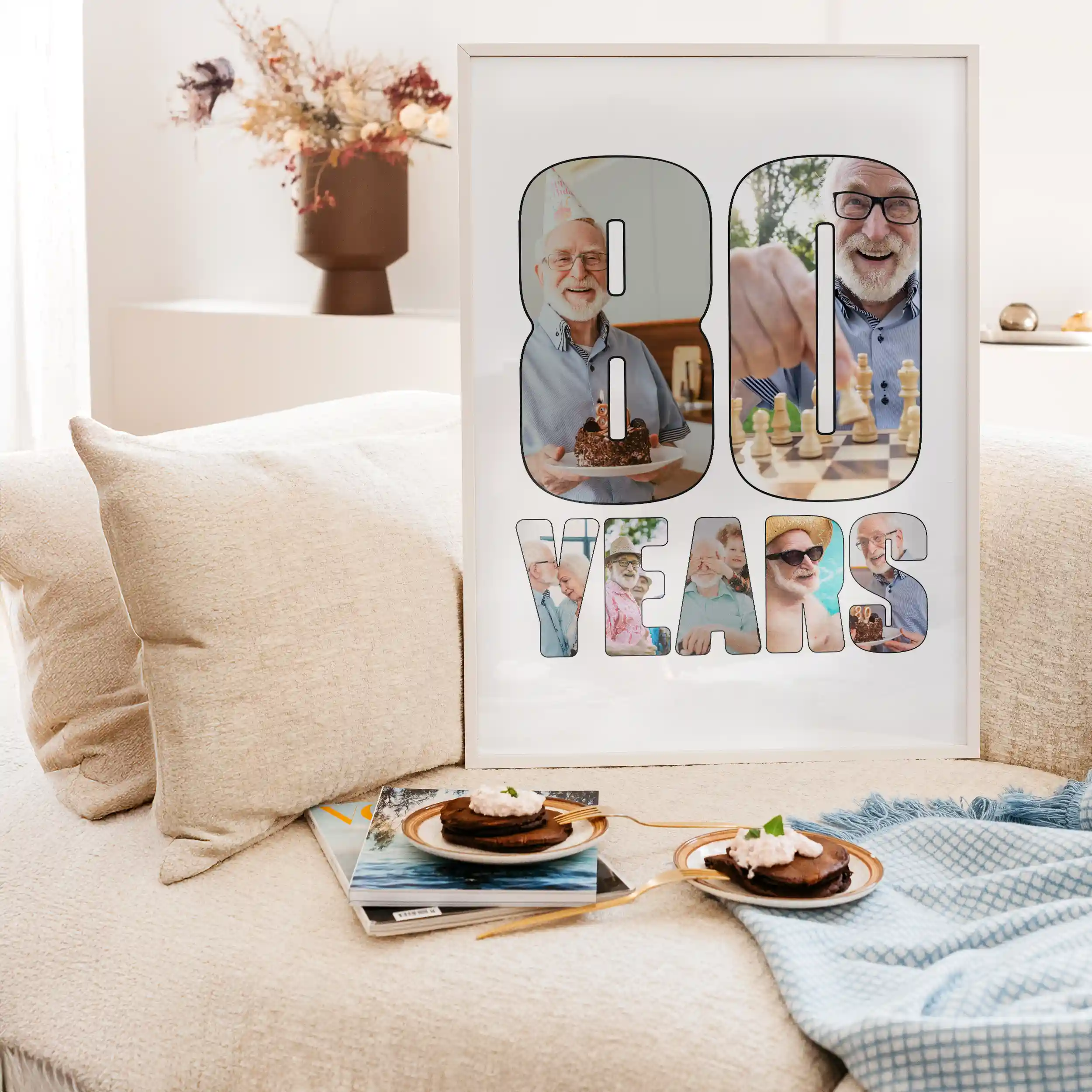 Turn photos from 80 years of life into a personalized collage that celebrates memories, milestones, and special moments in a meaningful birthday keepsake