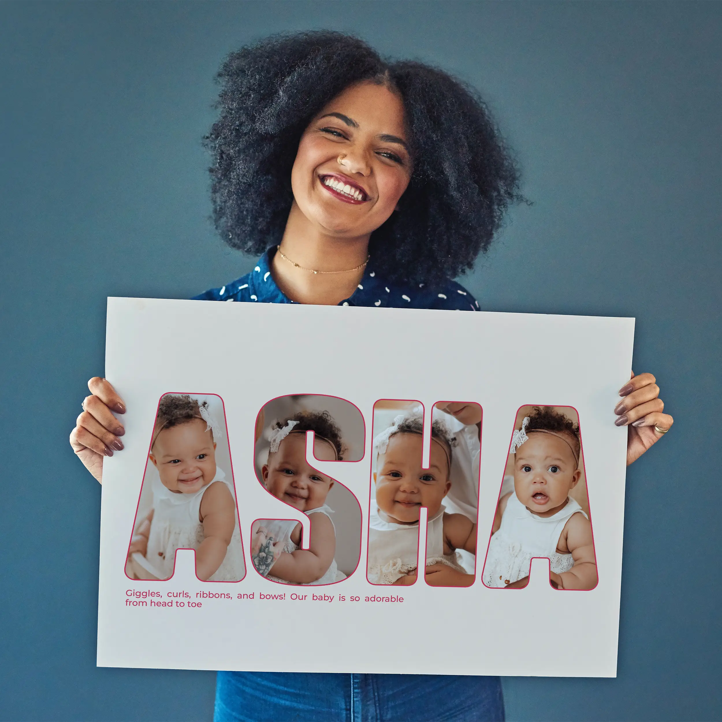 Creating a Baby Name Photo Collage is super easy with our easy-to-use online editor. In just three simple steps, you can craft a perfect gift that will be cherished for years to come. Our online editor is also mobile-friendly, so you can create your masterpiece on the go!