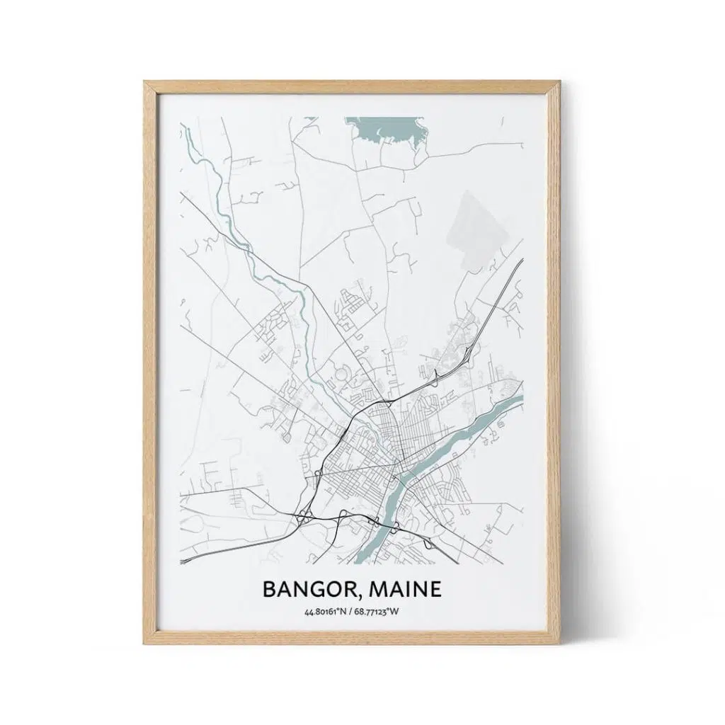 Bring home a piece of your favorite adventures with our Bangor map poster. Our custom high-quality posters make excellent wall art and gifts!