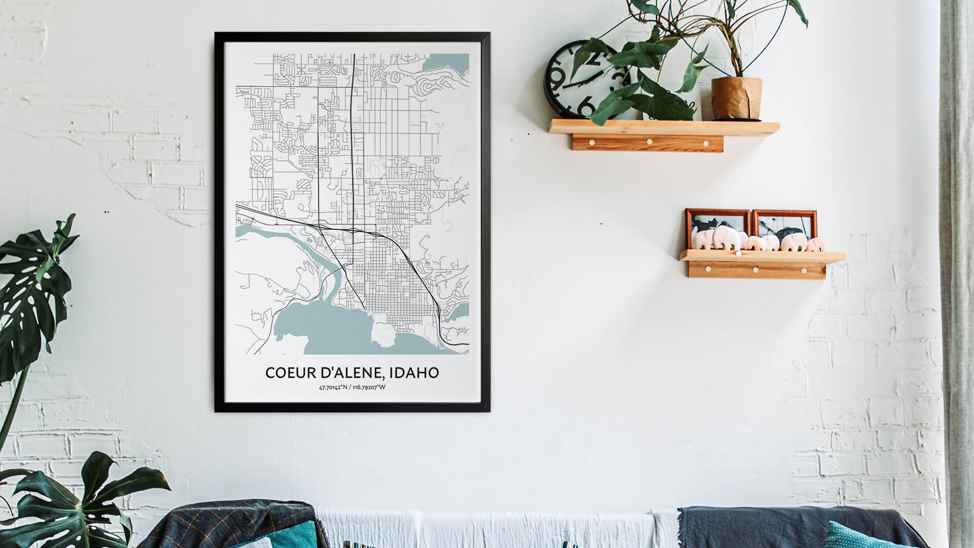 Bring home a piece of your favorite adventures with our Coeur d'Alene map poster. Our custom high-quality posters make excellent wall art and gifts!