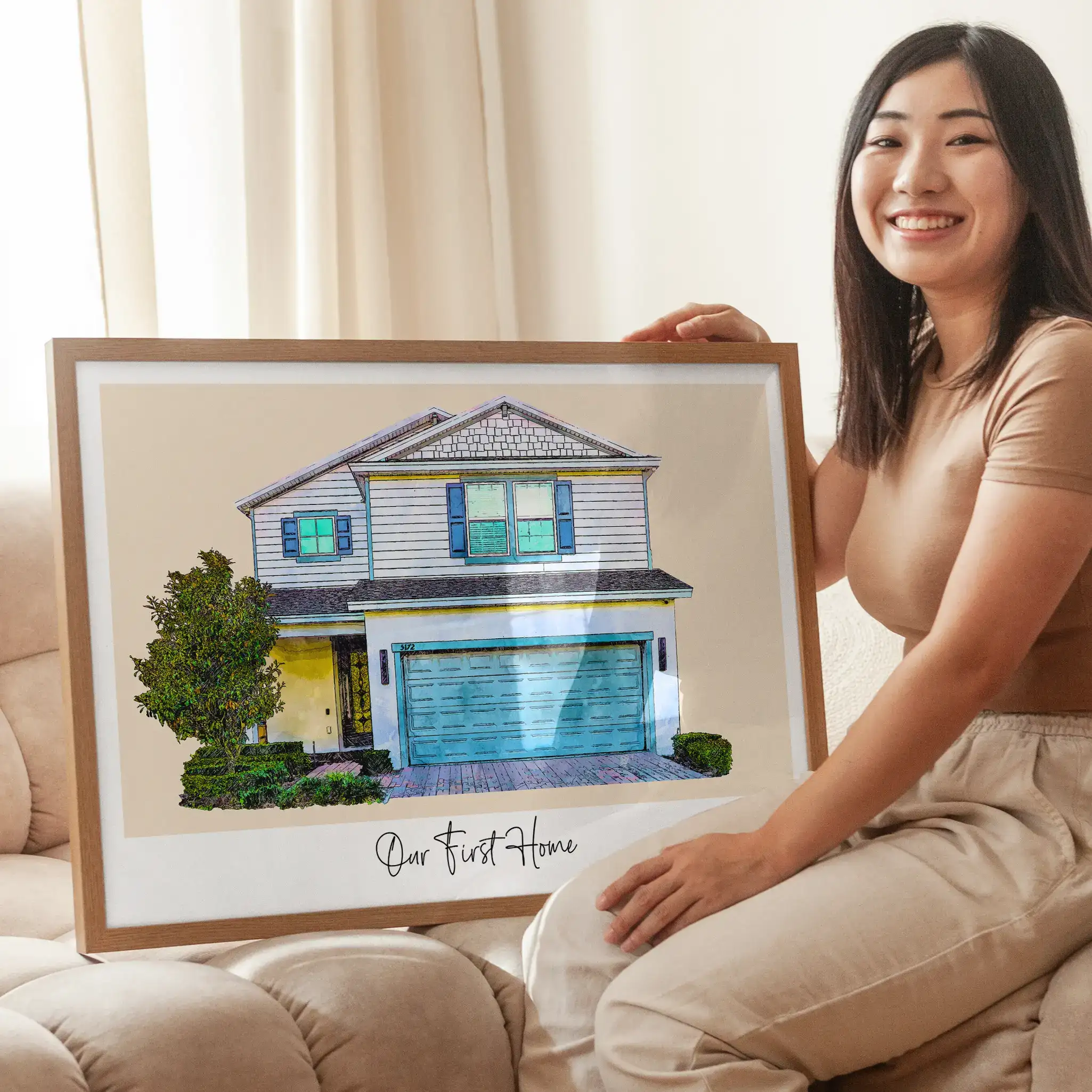 A Custom Watercolor House Portrait is a personalized artwork that transforms your home's photo into vibrant art. Specifically, it's hand-crafted by professional artists using high-quality watercolor paints on archival paper.