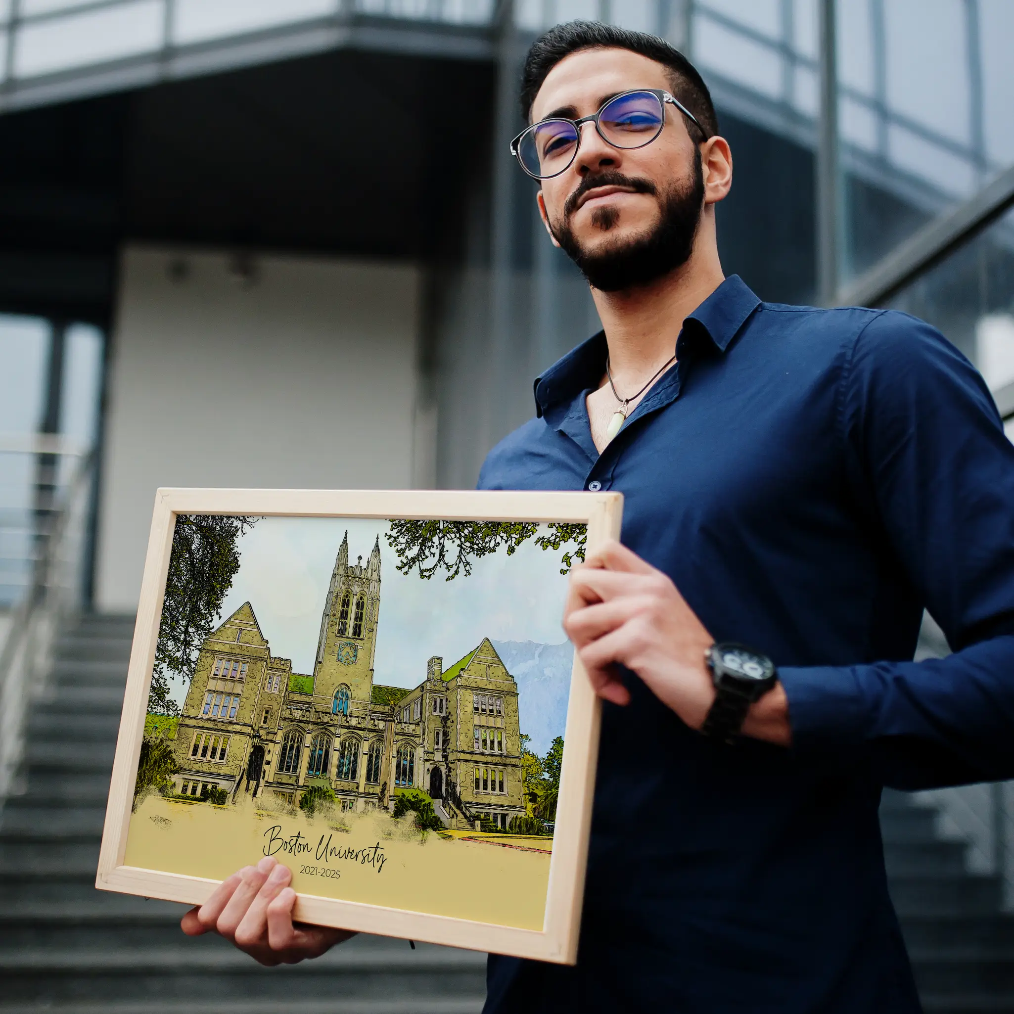 Turn a photo of your university into a unique digital watercolor portrait. The perfect personalized gift for alumni, students, or professors!