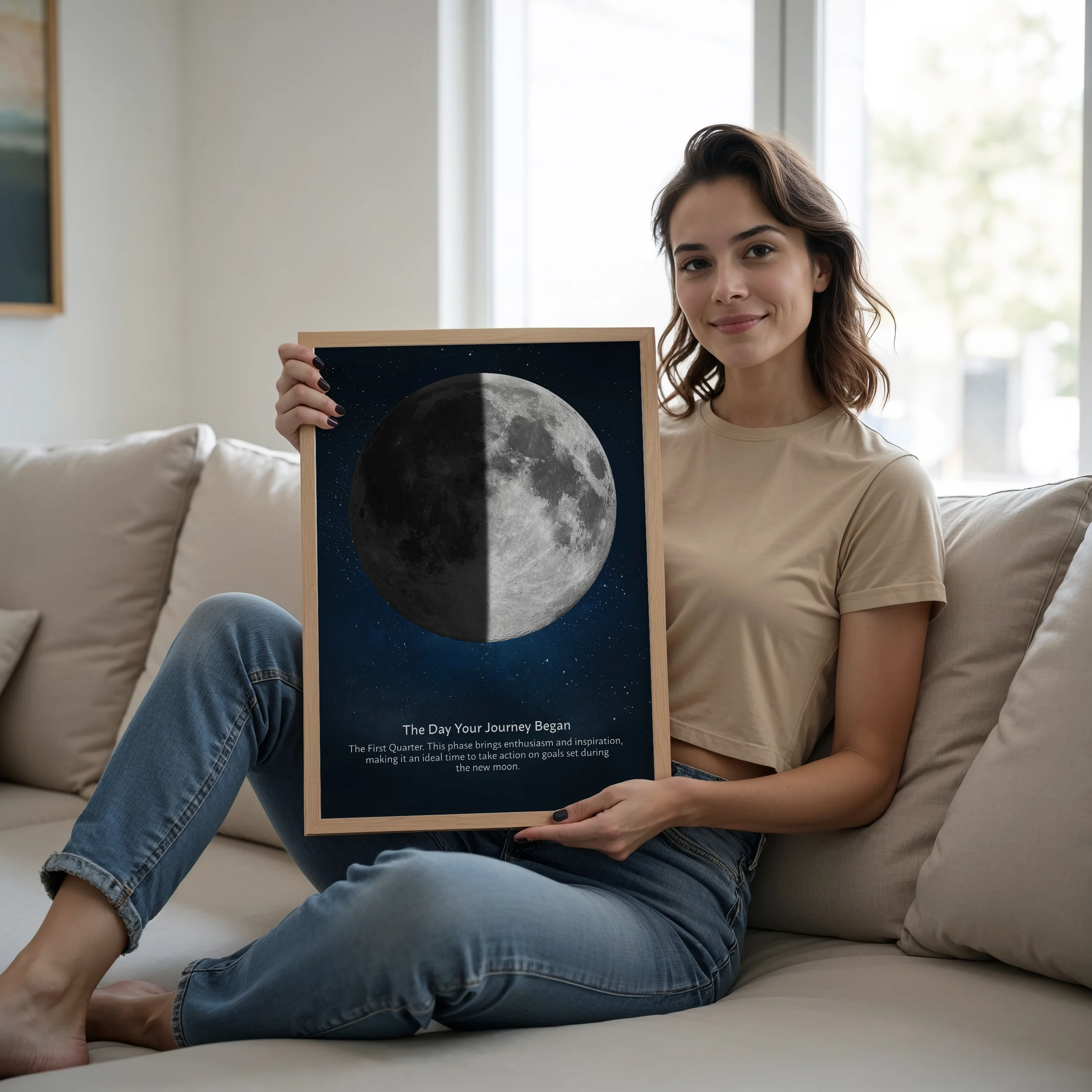First Quarter Moon Art makes a thoughtful gift for birthdays, anniversaries, or any memorable event. It’s also a special present for new parents, featuring the moon phase from the day their child was born. This art piece is ideal for anyone who appreciates the moon and wants to commemorate a significant date.