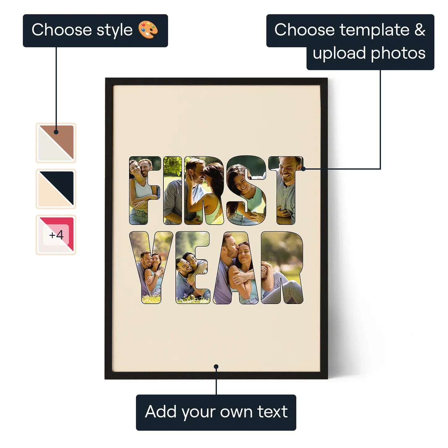 Turn photos from your first year together into a personalized collage that celebrates love, memories, and the beginning of your journey as a couple