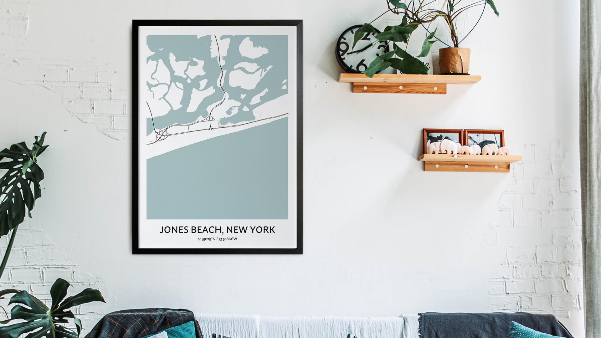 Bring home a piece of your favorite adventures with our Jones Beach map poster. Our custom high-quality posters make excellent wall art and gifts!