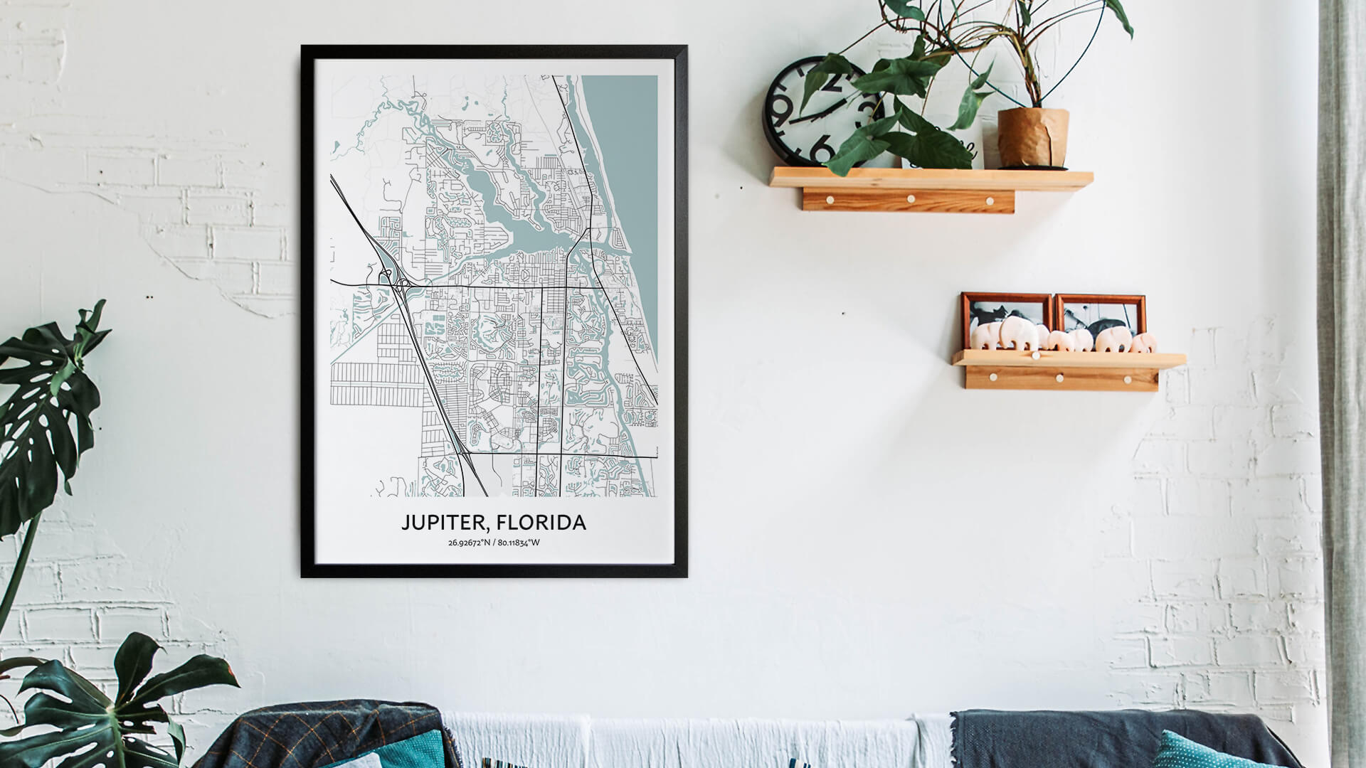 Every time you add a city map poster to your walls, you’re telling a part of your life’s story to every visitor who enters your home. You can start with Jupiter Map art, then add more city prints to your walls over time, each one sharing a different chapter of your life.