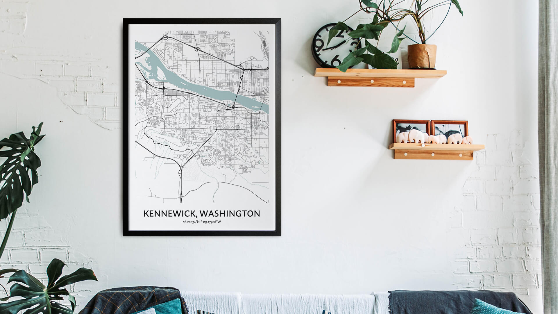 Bring home a piece of your favorite adventures with our Kennewick map poster. Our custom high-quality posters make excellent wall art and gifts!