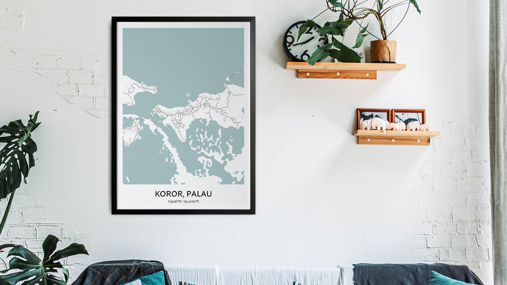 Bring home a piece of your favorite adventures with our Koror map poster. Our custom high-quality posters make excellent wall art and gifts!