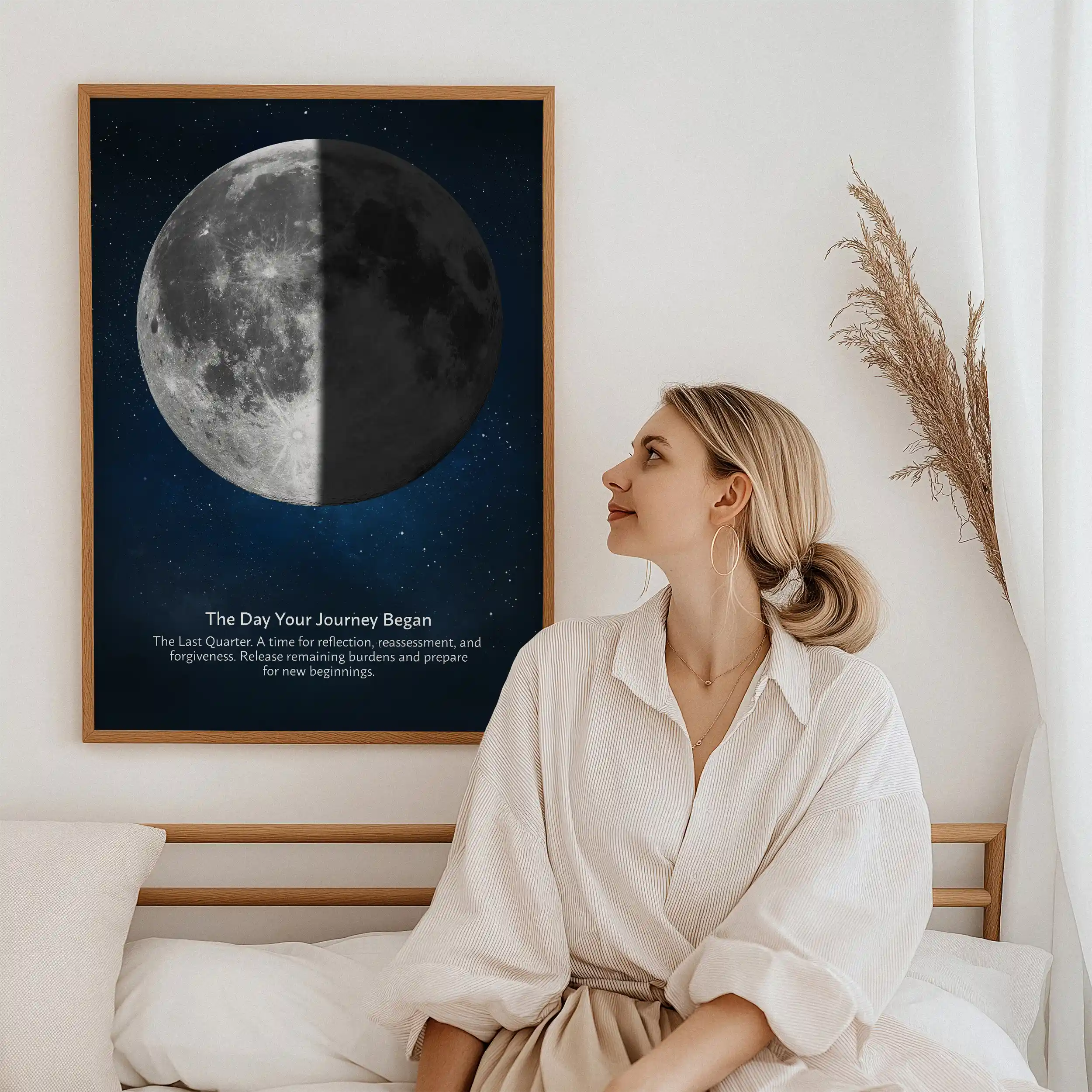 Last Quarter Moon Art makes a thoughtful gift for birthdays, anniversaries, or any memorable event. It’s also a special present for new parents, featuring the moon phase from the day their child was born. This art piece is ideal for anyone who appreciates the moon and wants to commemorate a significant date.