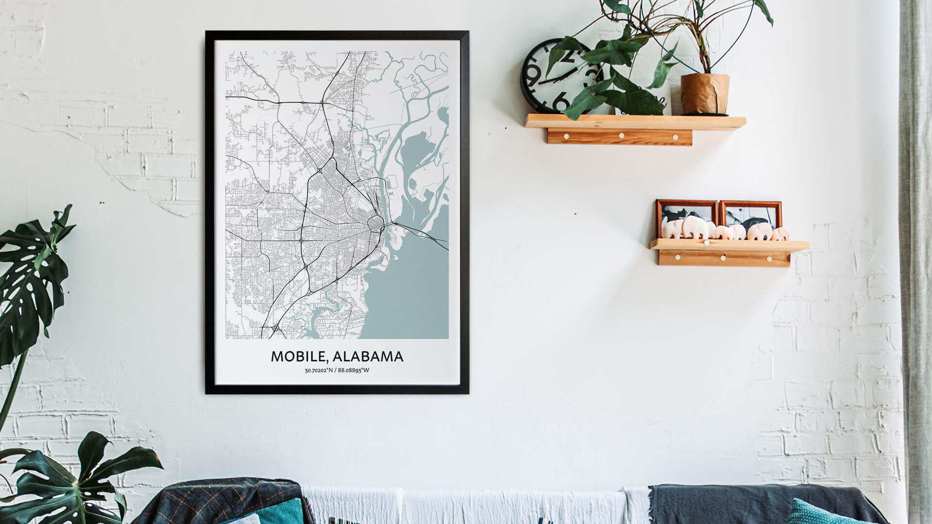 Bring home a piece of your favorite adventures with our Mobile map poster. Our custom high-quality posters make excellent wall art and gifts!