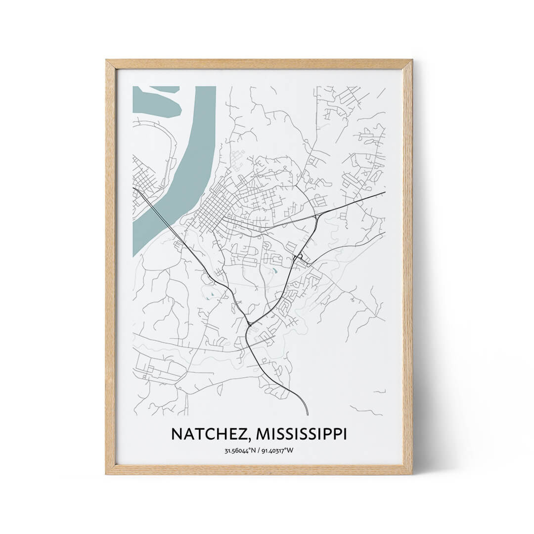 Bring home a piece of your favorite adventures with our Natchez map poster. Our custom high-quality posters make excellent wall art and gifts!