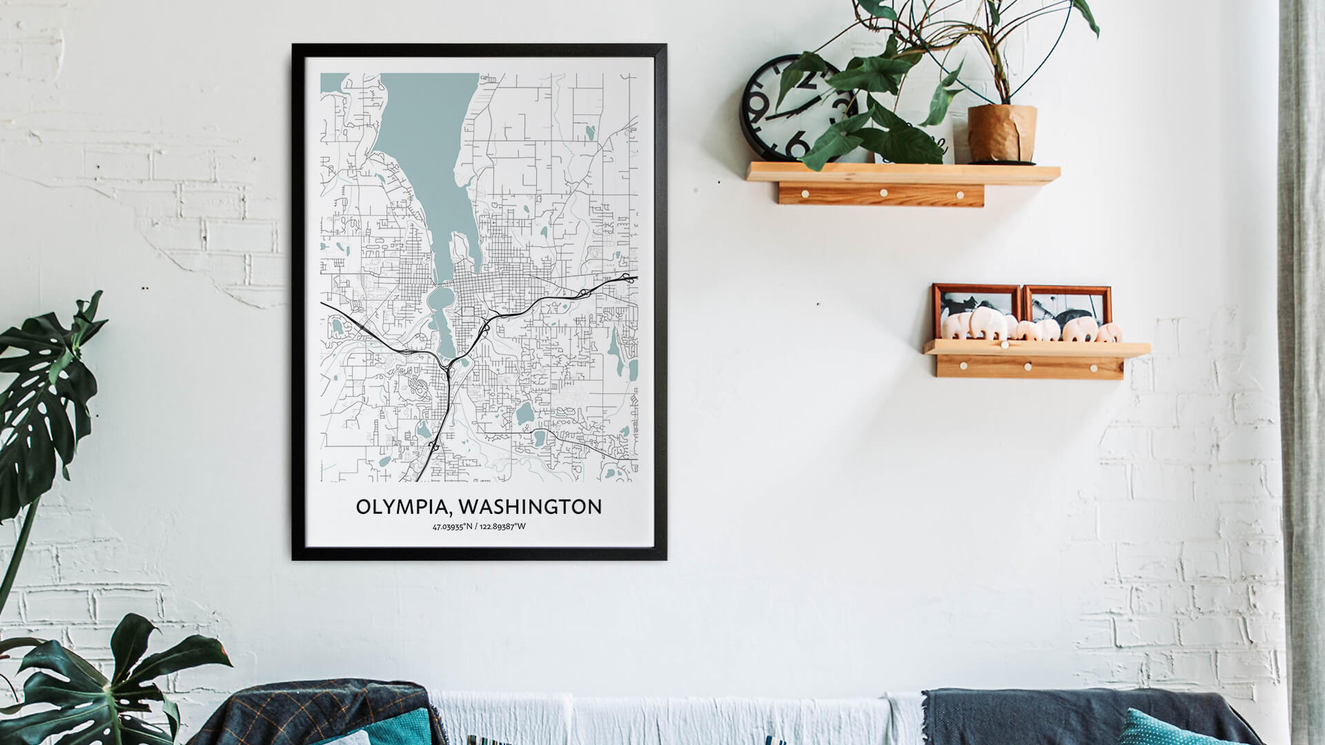 Bring home a piece of your favorite adventures with our Olympia map poster. Our custom high-quality posters make excellent wall art and gifts!