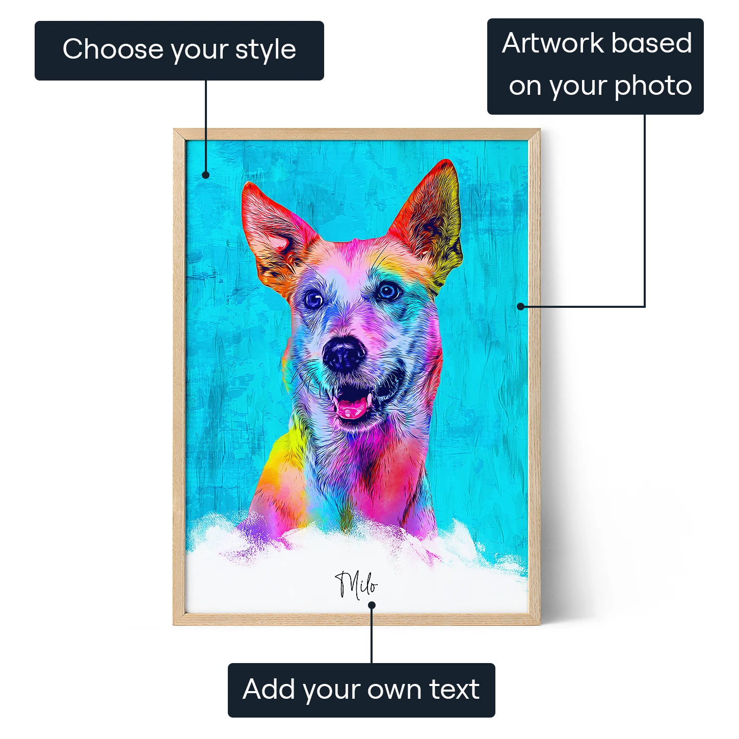 Just upload your photo—our talented artist will handle the rest, crafting a one-of-a-kind illustration of your beloved pet