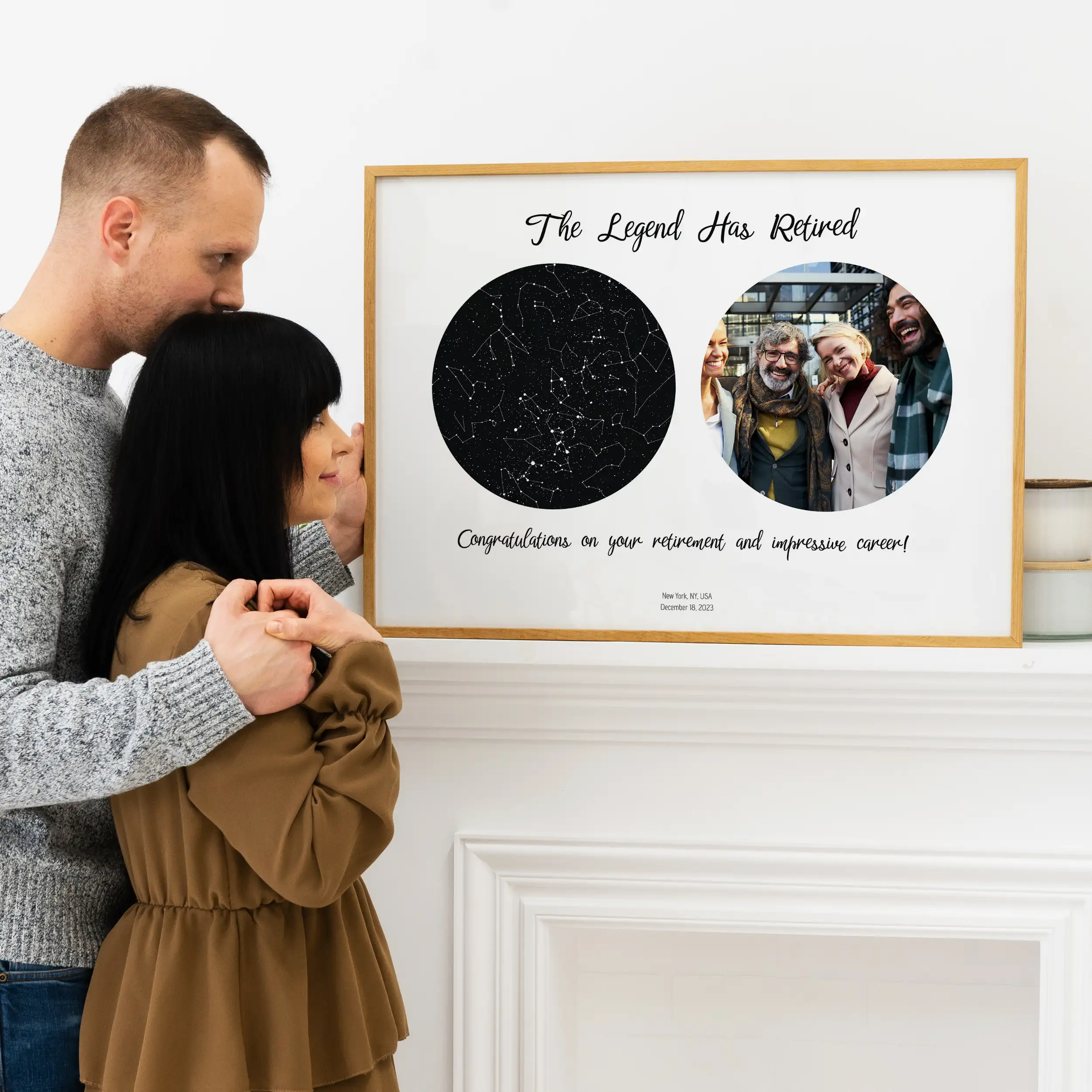 Our online creator makes it easy to create a meaningful tribute to a departing colleague or boss. Choose your preferred style, include celestial elements like constellations and the Milky Way, and personalize it with a special title. Input the date when their new journey begins, and watch the star map come to life in the online preview. Adding a photo of the team and colleagues completes this heartfelt masterpiece.