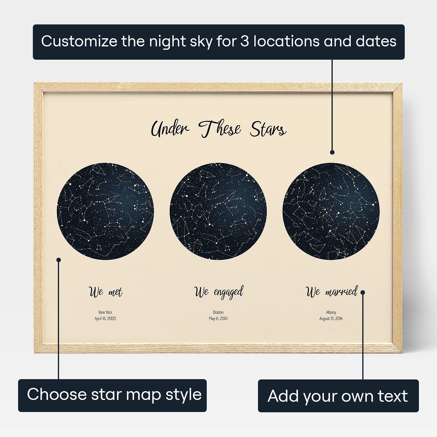 Make a lasting impression with our personalized Triple Star Map gift – it's perfect for anniversaries, weddings or birthdays! Get ready to surprise that special someone in your life with this beautiful piece of art. Keep reading and find out why this will be a gift to be remembered for years to come.