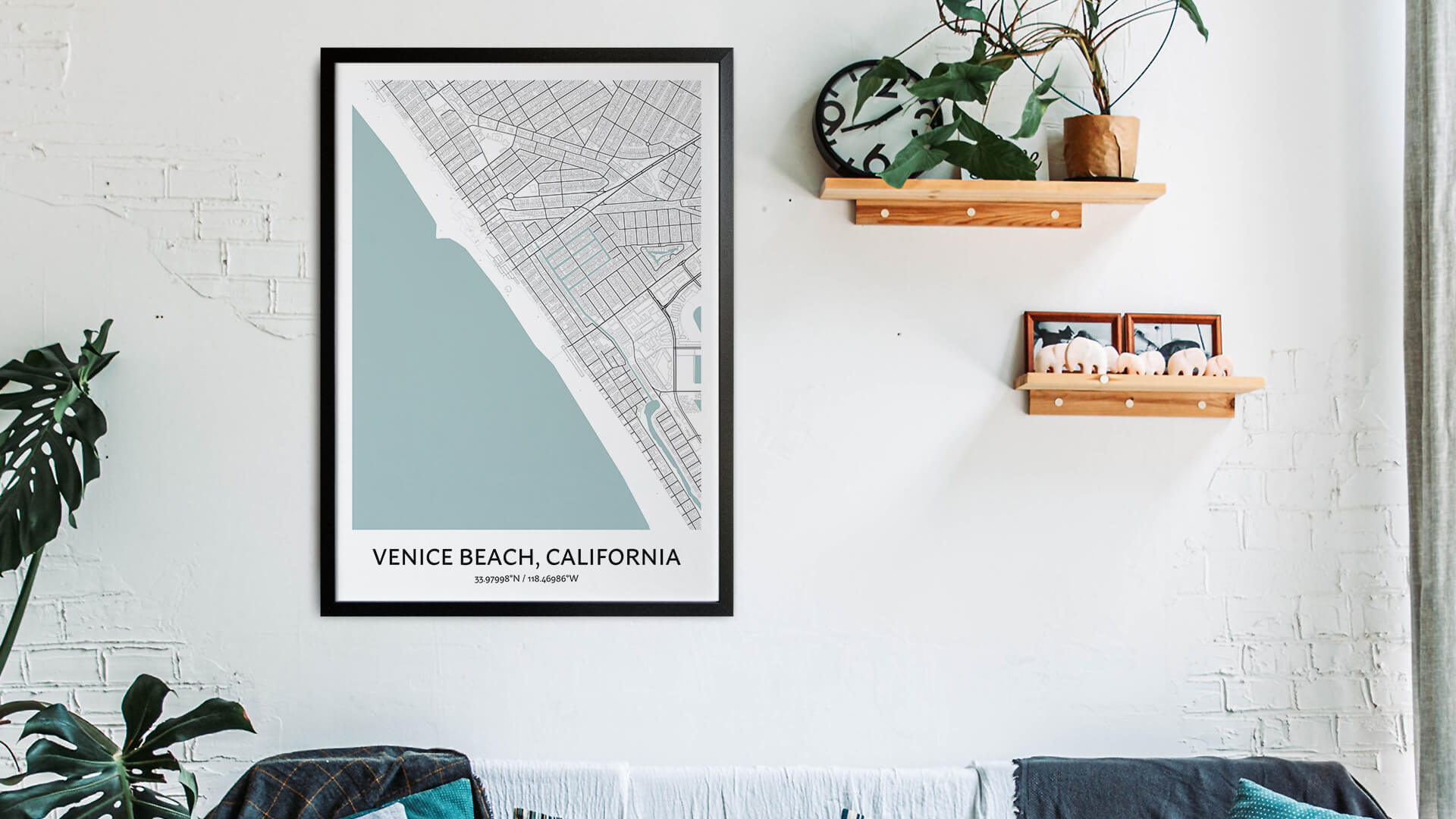 Bring home a piece of your favorite adventures with our Venice Beach map poster. Our custom high-quality posters make excellent wall art and gifts!