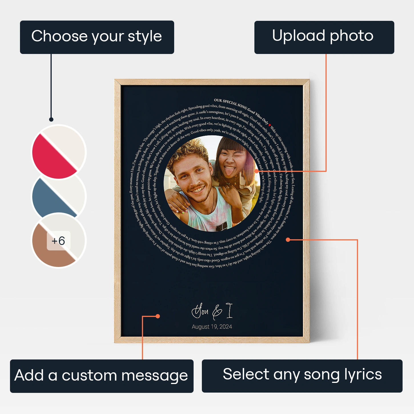Ready to create a unique and romantic gift? Start personalizing your You & Me - Custom Song Lyrics Art today. Visit our online editor to upload your photo, choose a background, enter the song lyrics, and add a personal message. Choose the format that fits your style, and you’re all set!
