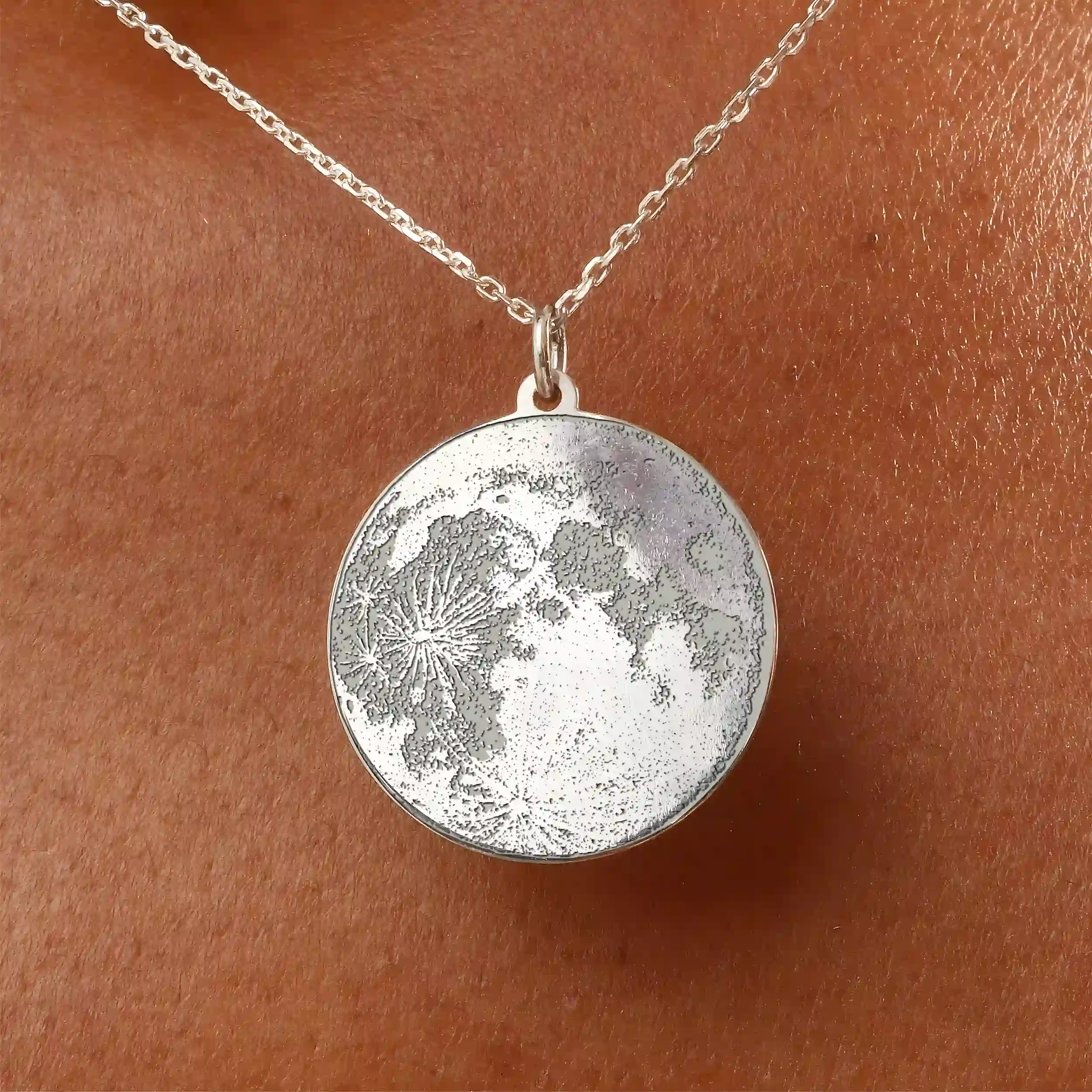 Med våra Custom Moon Phase Jewelry kan du skapa ett unikt hänge som berättar din unika historia. Med hjälp av vår online-editor anger du bara exakt tid och datum för ditt speciella ögonblick. Oavsett om det är dagen då du träffade din själsfrände, datumet för ditt bröllop eller något annat minnesvärt tillfälle, så fångar vi månfasen från just det ögonblicket.