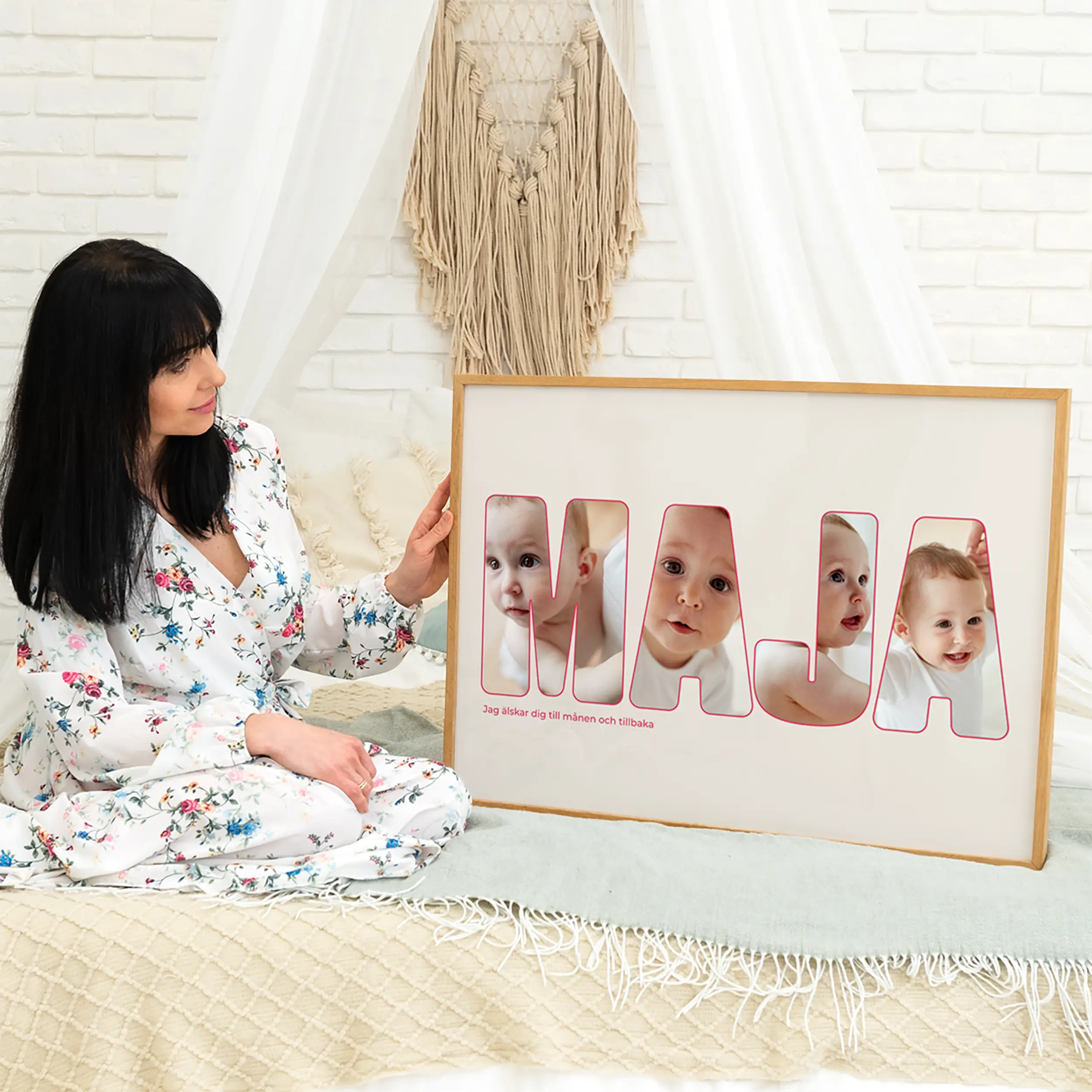 Skapa ett personligt och unikt fotocollage med bebisnamn