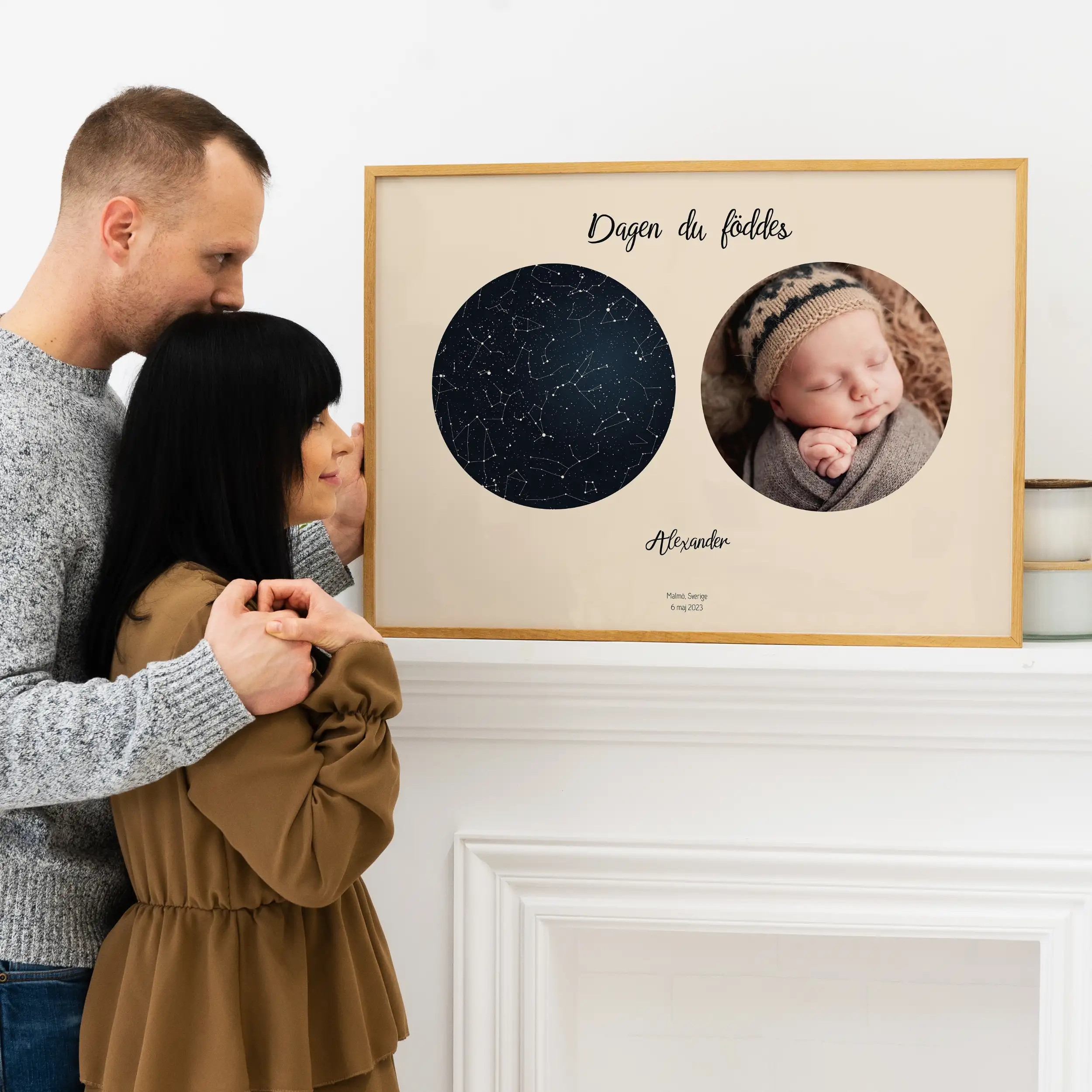 "Dagen du föddes med foto" är en skatt som kommer att stå sig över tid. Det är en utsökt påminnelse om den speciella dagen, en koppling till stjärnorna ovanför och den kärlek som omger födelsedagsbarnet. Varje blick på denna unika kombination av stjärnkarta och foto kommer att återuppväcka kära minnen och varma känslor. Gör din födelsedagspresent oförglömlig med detta personliga mästerverk.