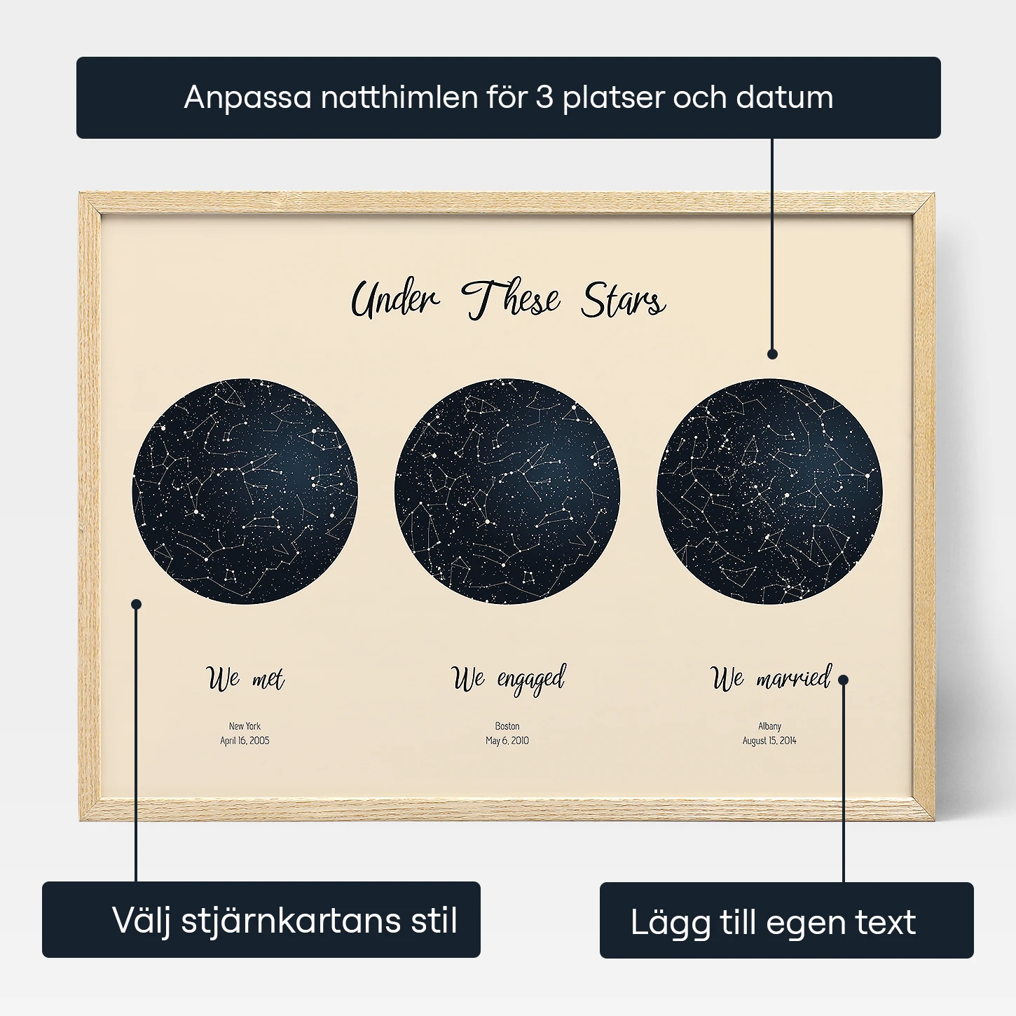 • Designa din egen stjärnkarta som visar himlen från 3 olika platser och datum