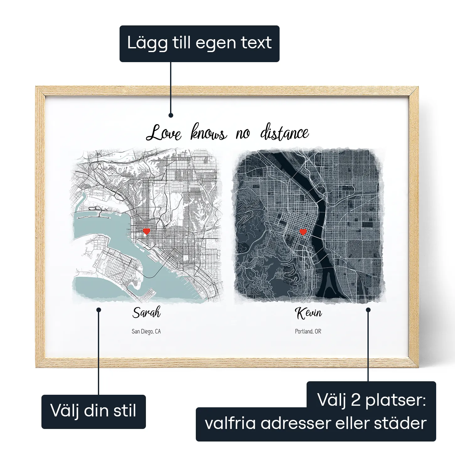 - Fånga essensen av två speciella platser med vår personliga kartposter